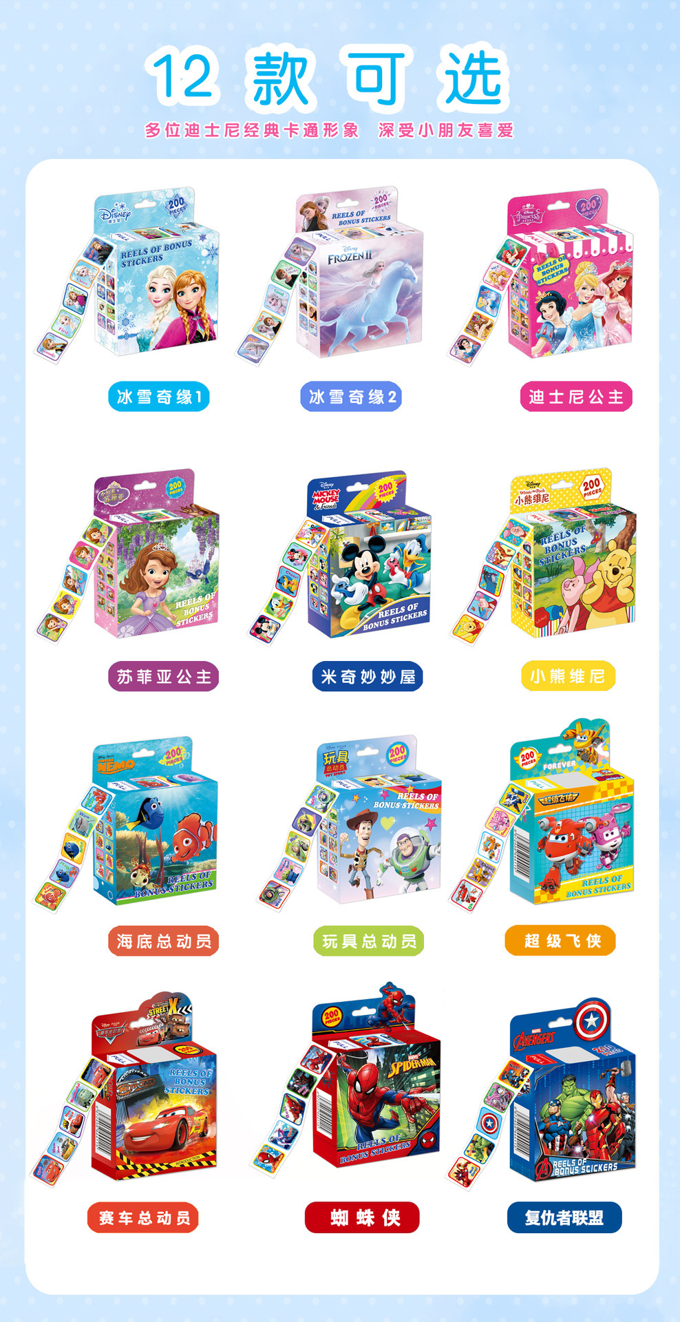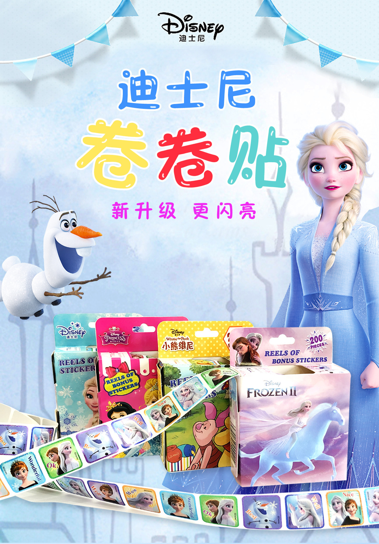 공주 아이샤 빛나는 만화 롤 스티커 냉동 공주 돼지 어린이 스티커 유치원 상 스티커