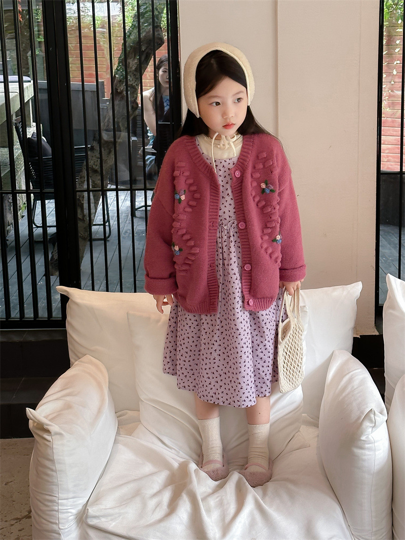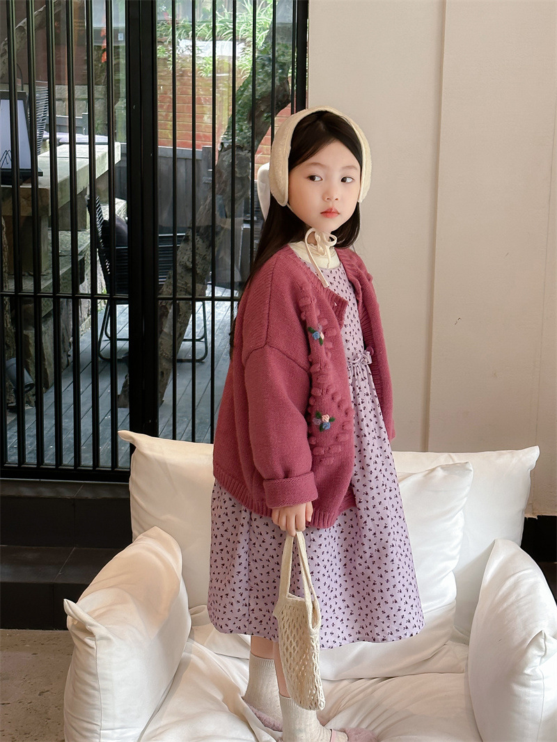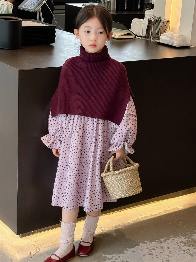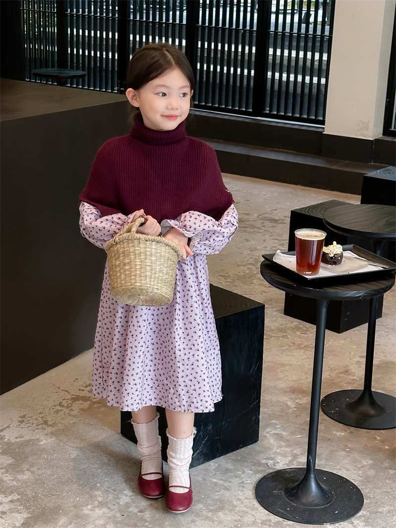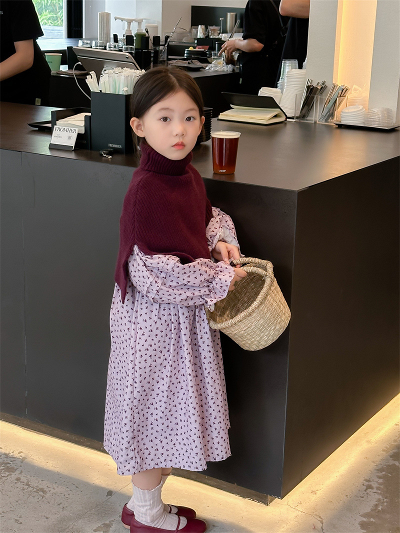 여자의 치마 가을 2023 새로운 스타일 아이들의 꽃 원피스 가을 여자의 치마 칼라스토어 가기
