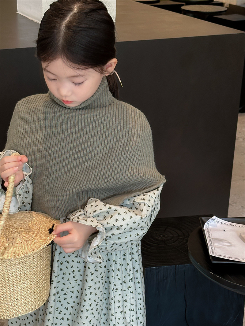 여자의 치마 가을 2023 새로운 스타일 아이들의 꽃 원피스 가을 여자의 치마 칼라