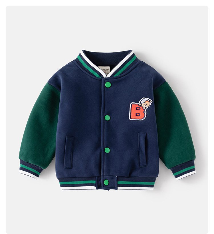 남아 야구복 2025 가을 겨울 신상 아기 지퍼 셔츠 스웨트셔츠 아동용 플리스 안감 두꺼운 재킷 대외 무역 도매