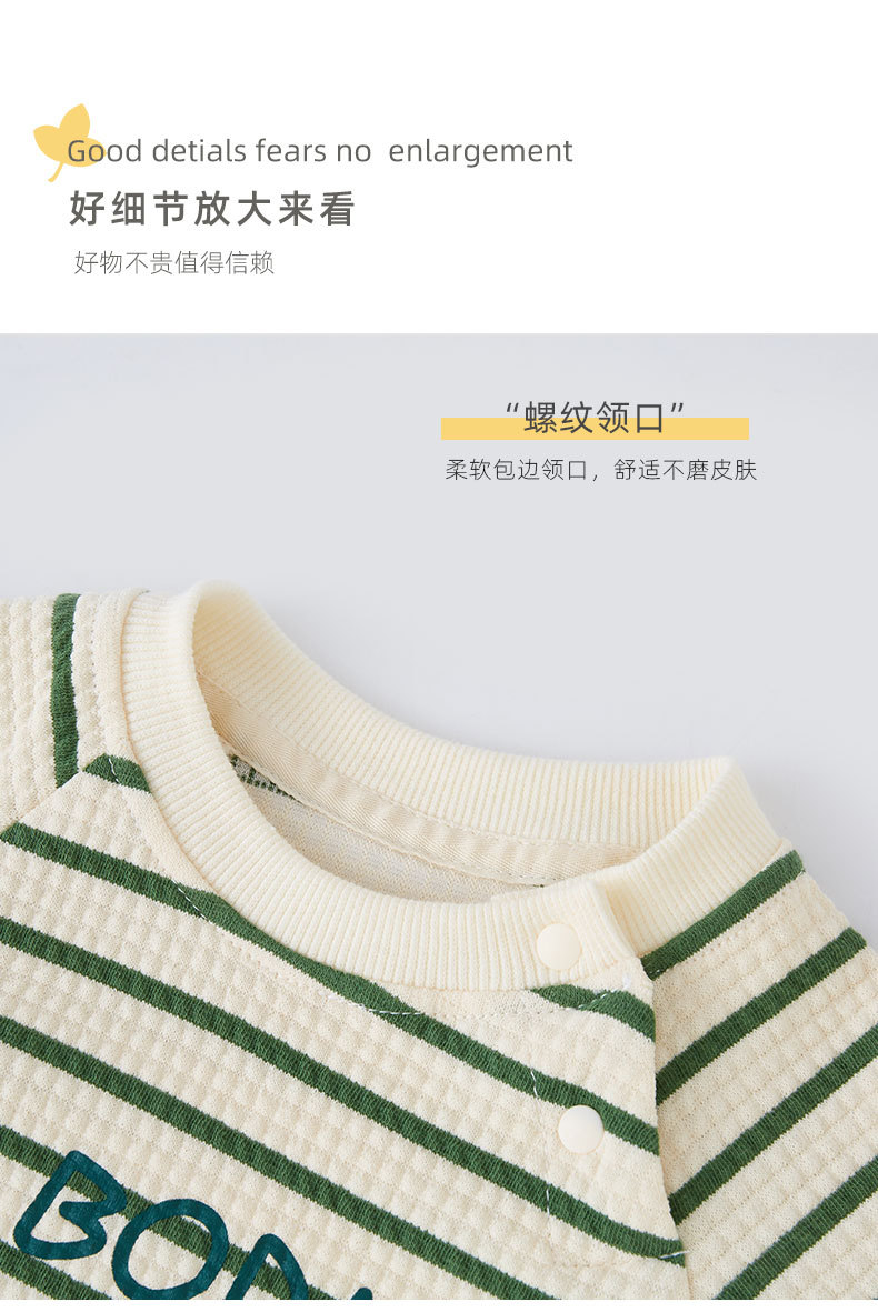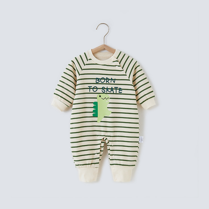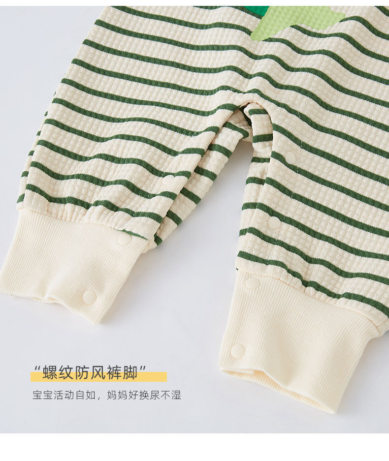 스트라이프 아기 점프 슈트 봄과 가을 카키 겉옷 남자와 여자의 아기 신생아 옷 따뜻한 등산 옷