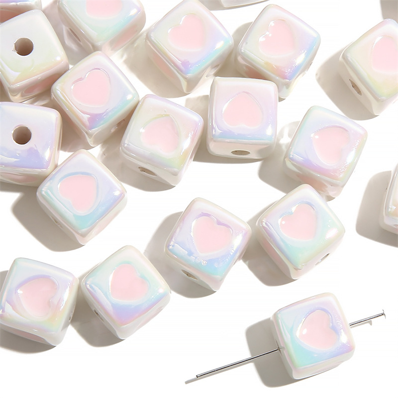 아크릴 컬러 도금 오일 드롭 스퀘어 4 면 사랑 입체 구슬 DIY 팔찌 보석 액세서리 재료