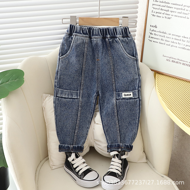 남아 봄 가을 바지 2023 새로운 어린이 바지 가을 유행 캐주얼 편지 바지 어린이 스포츠 바지스토어 가기