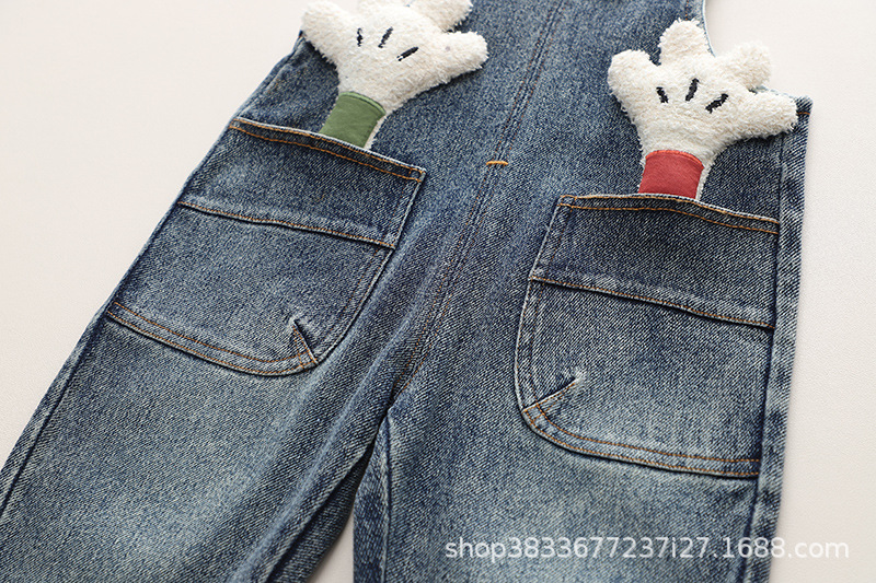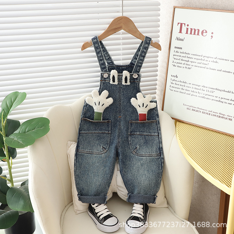 봄과 가을 팜 스트랩 바지 2023 바지 어린이 데님 아기 소년 새로운 유행 스트랩 바지 간단한 도매스토어 가기