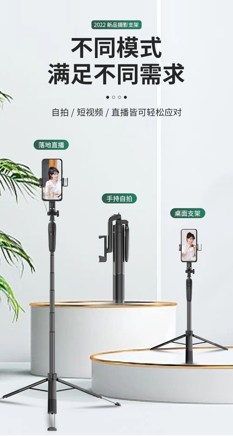 다기능 휴대 전화 사진 스탠드 접이식 핸드 헬드 셀카 스틱 텔레스코픽 통합 데스크탑 라이브 삼각대
