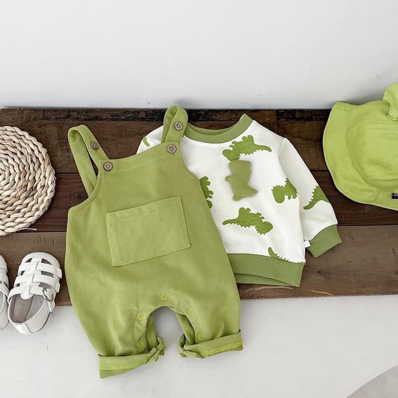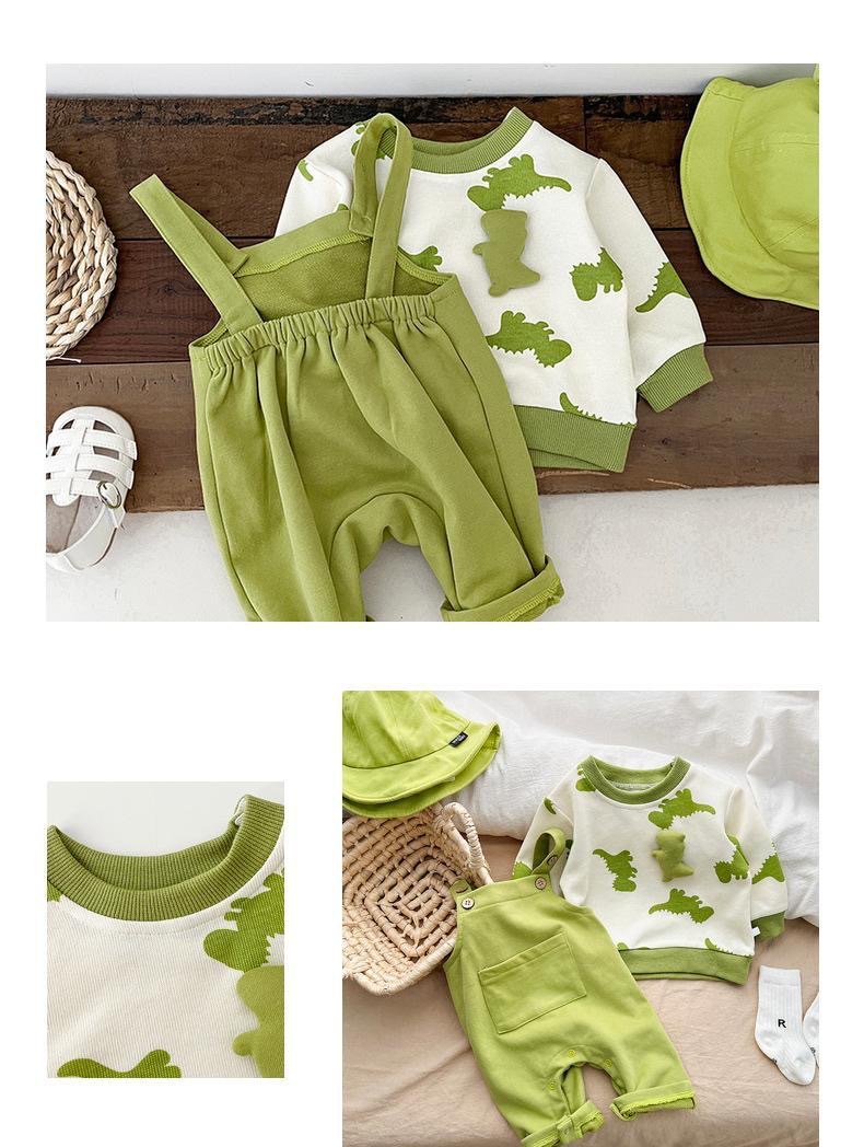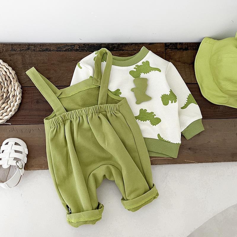 아기 옷 봄과 가을 소매 바지 하 옷 아기 만화 풀오버 캐주얼 스웨트 셔츠 2 개 세트 그린 공룡 세트