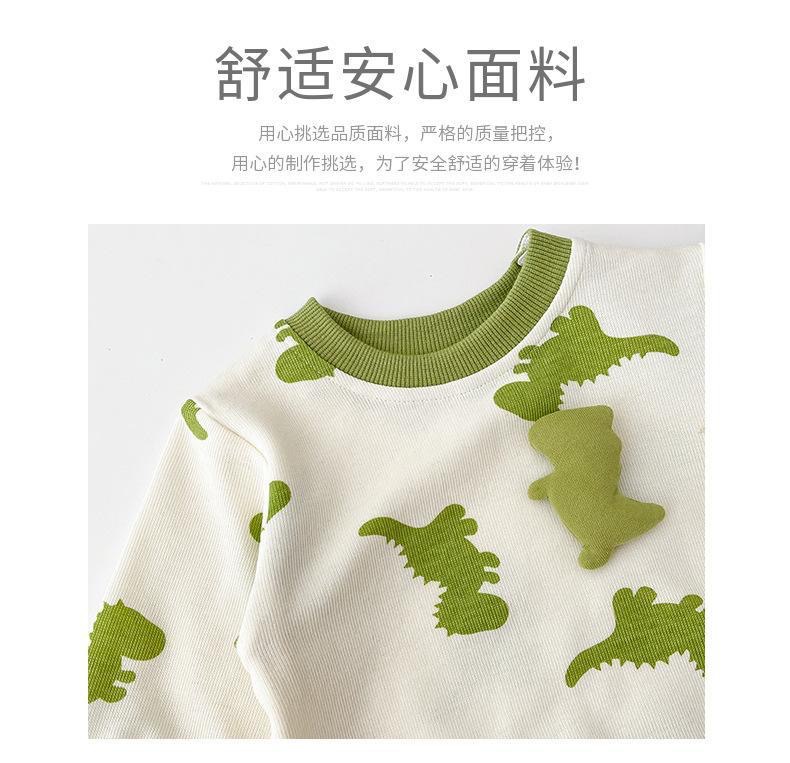 아기 옷 봄과 가을 소매 바지 하 옷 아기 만화 풀오버 캐주얼 스웨트 셔츠 2 개 세트 그린 공룡 세트스토어 가기
