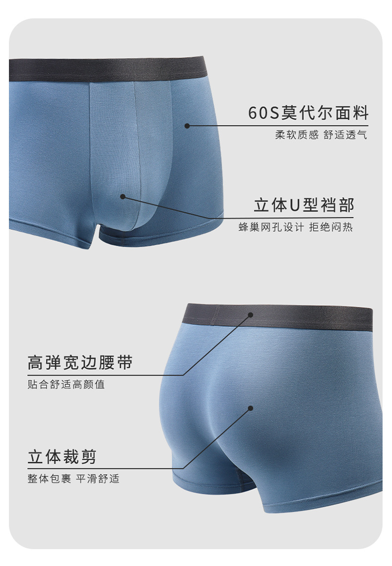 2025 남성용 60수 모달 속옷 단색 얇은 통기성 항균 사각팬티 도매 통기성 항균