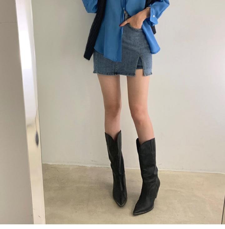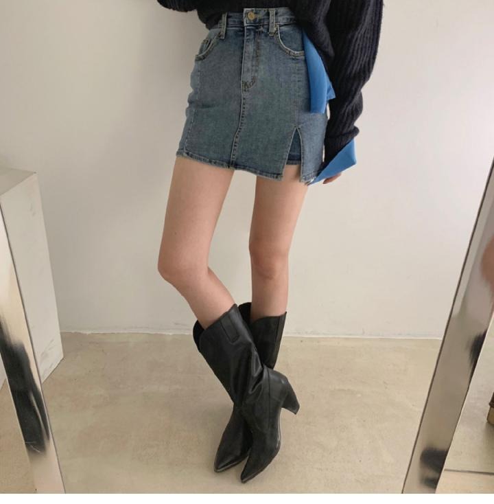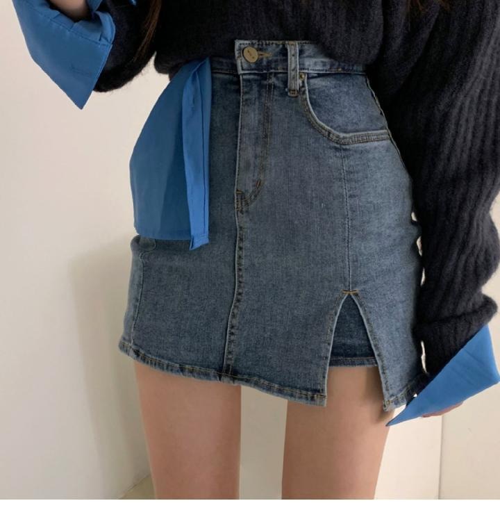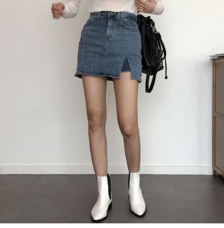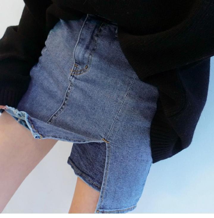 패션 올 매치 하이 허리 사이드 슬릿 스커트 여성 빈티지 니크 데님 스커트 섹시한 슬림 핏 힙합 스커트 여름스토어 가기