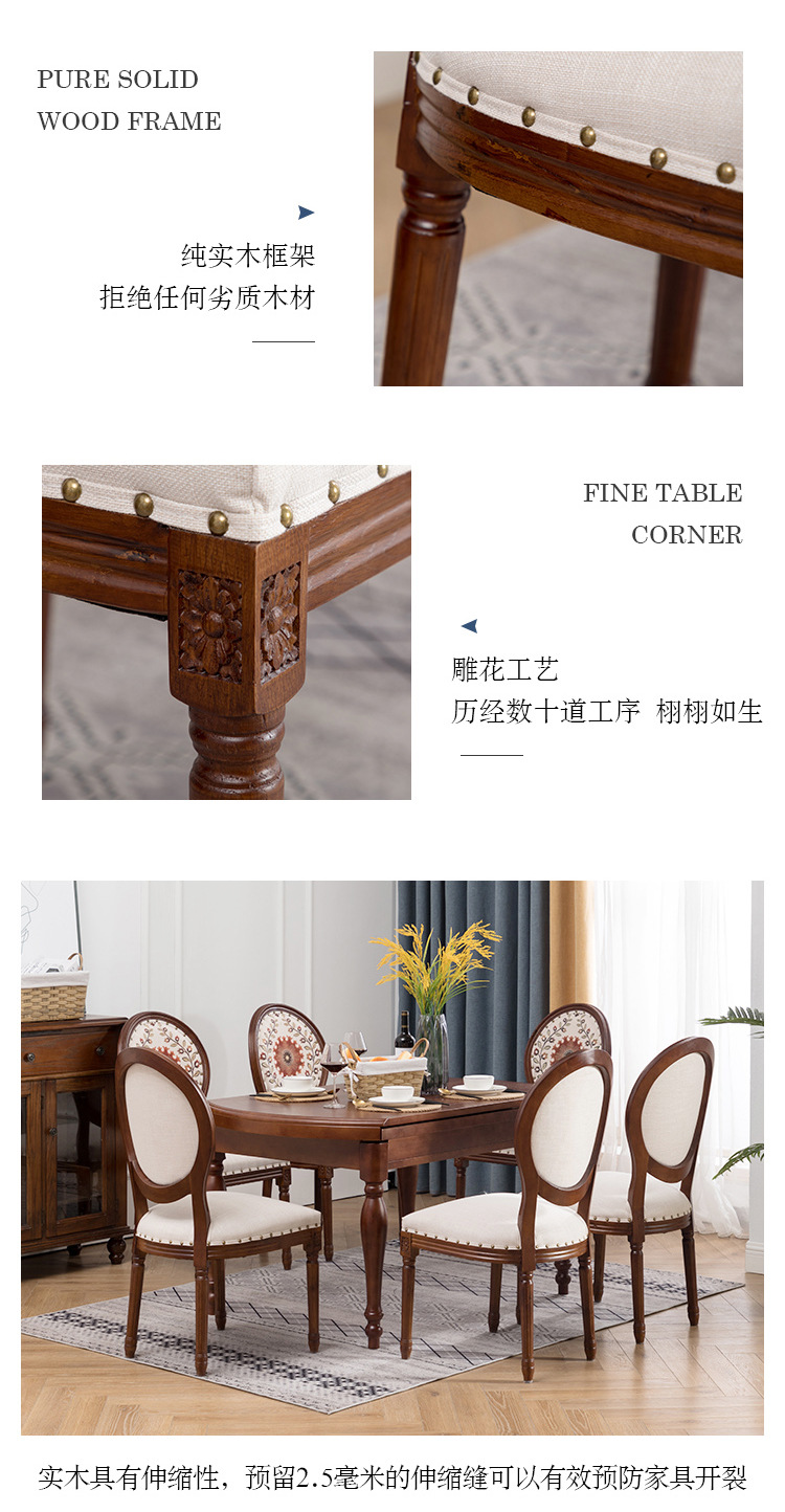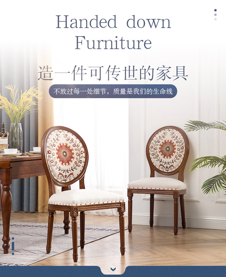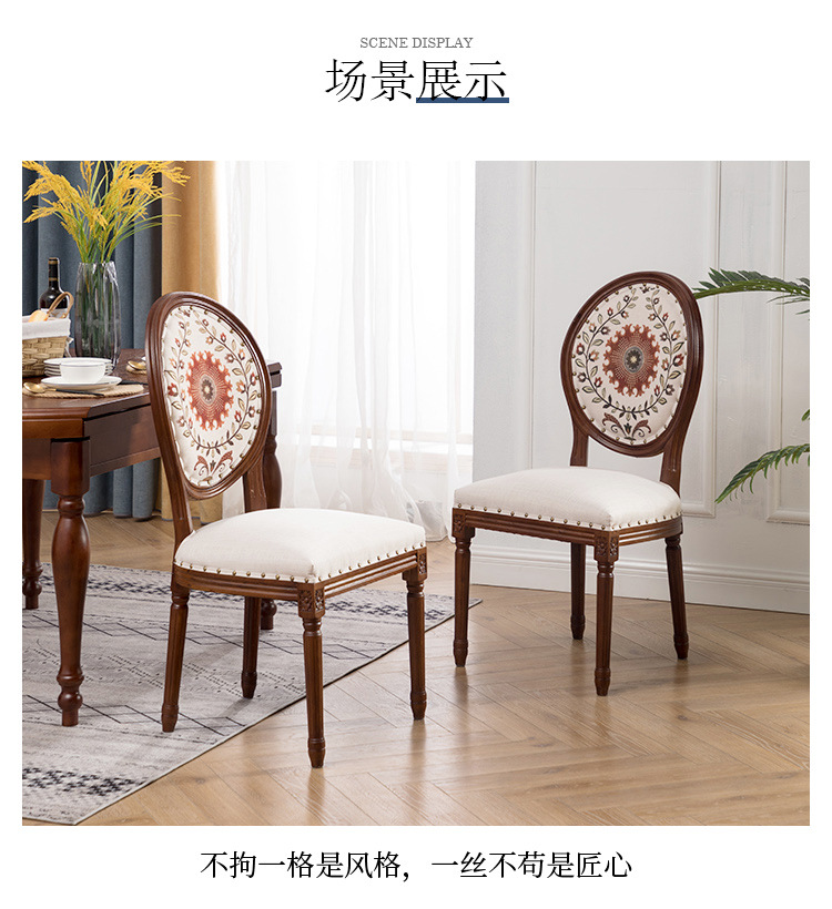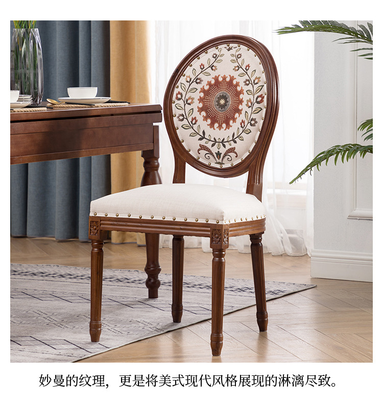 아메리칸 스타일 캐주얼 로그 북유럽 스타일 대형 오크 등받이 의자 조각 화초 문화 가정용 레트로 고급 식당 의자 서양 식당 의자 천스토어 가기
