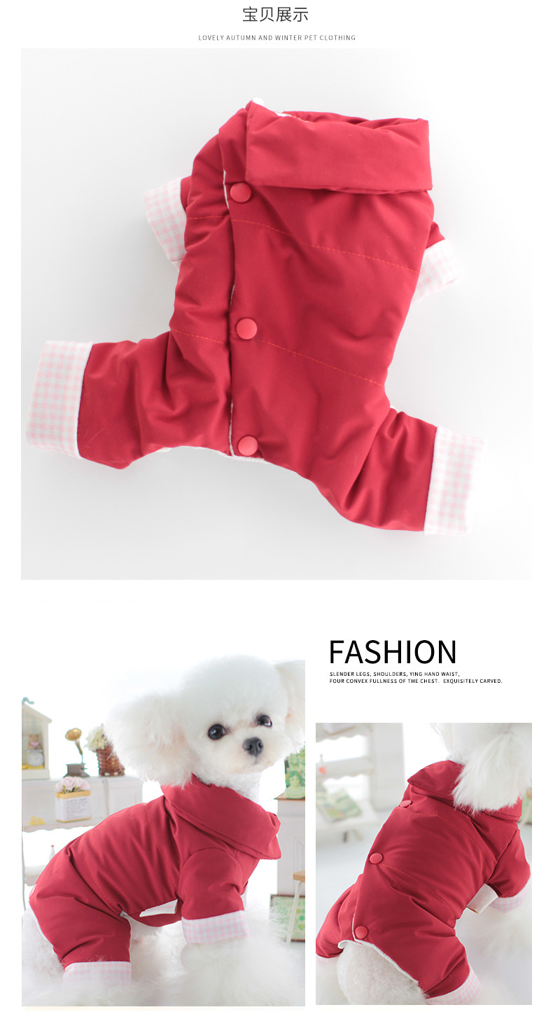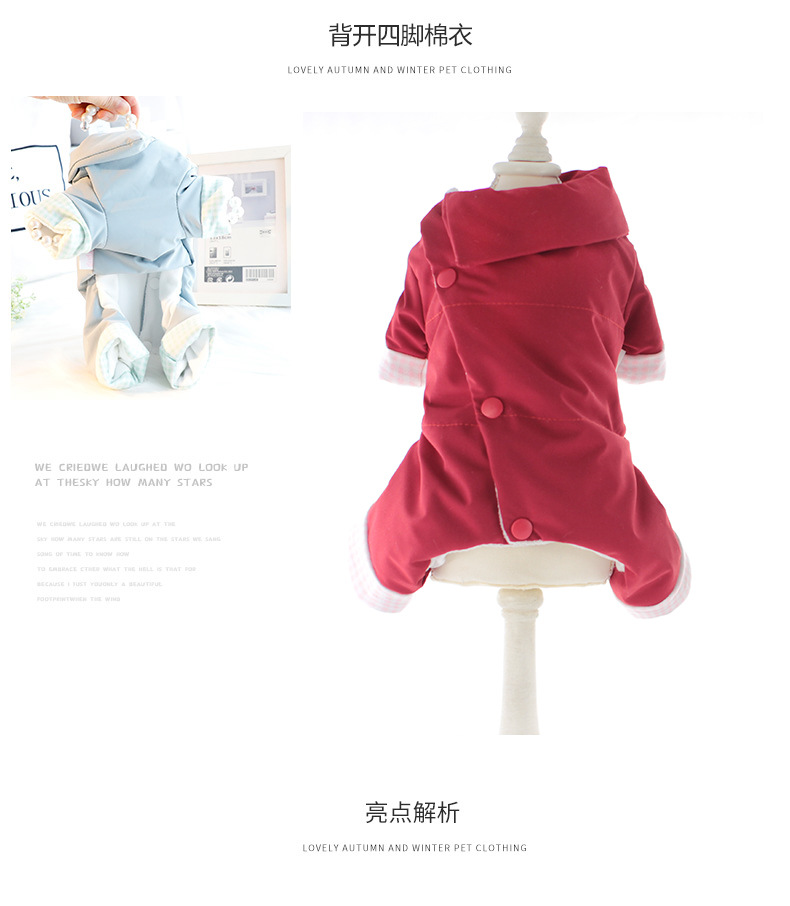 개 옷 가을과 겨울 두꺼운 네 발 면 패딩 옷 기모 다시 오픈 버클 잘 생긴 작은 개 테디 애완 동물 4929스토어 가기