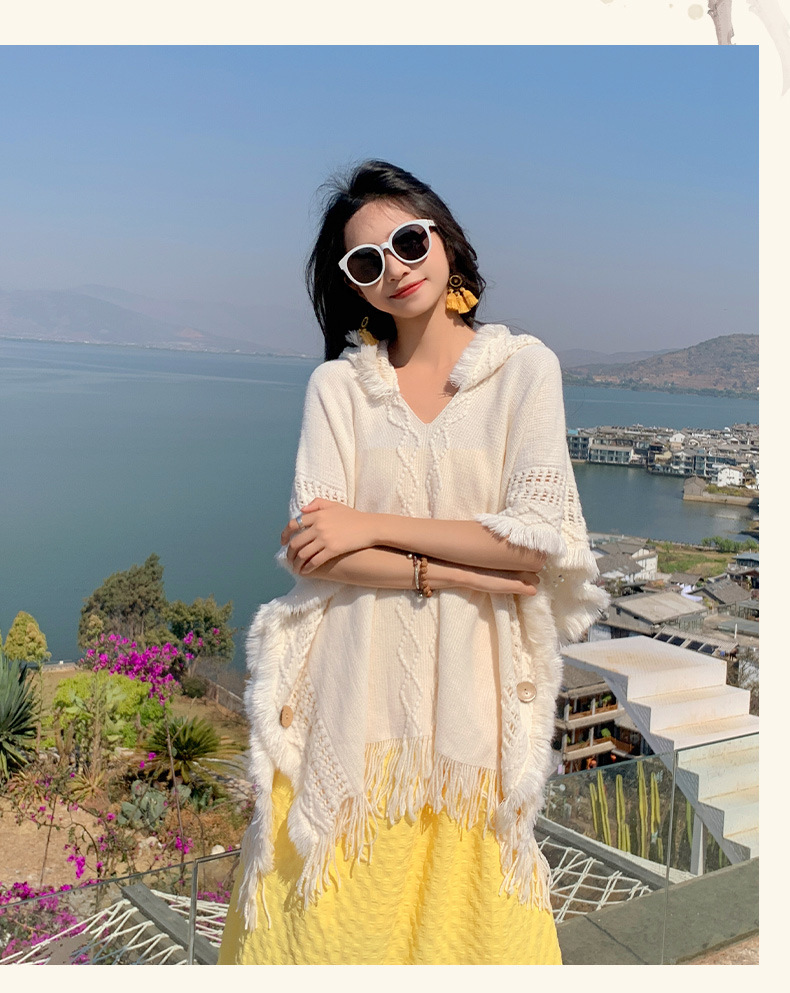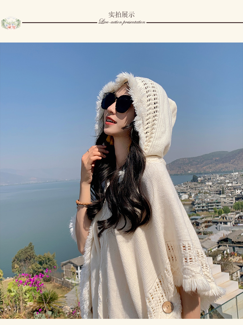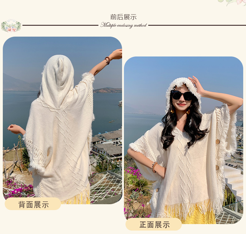 보헤미안 에스닉 스타일 후드 니트웨어 술 따뜻한 후드 여행 카드 사진 터틀넥 숄 케이프스토어 가기