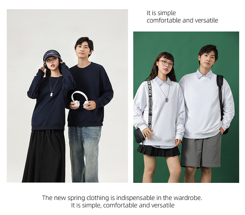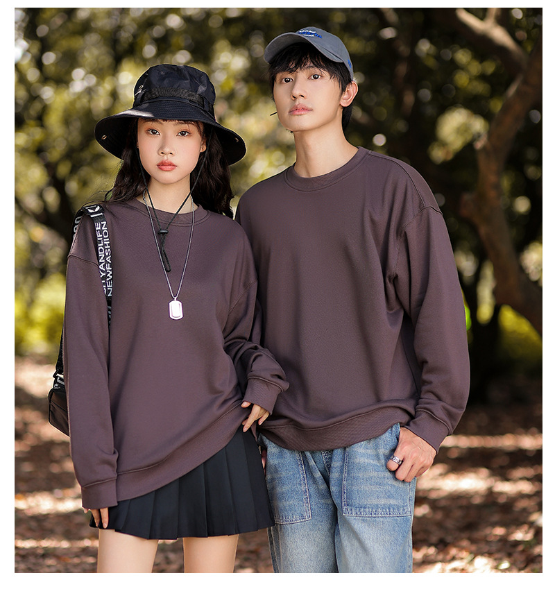 가벼운 럭셔리 380g 무거운 단색 테리 라운드 넥 풀오버 조끼 남성 가을과 겨울 기본 어깨 긴 소매 재킷 여성스토어 가기