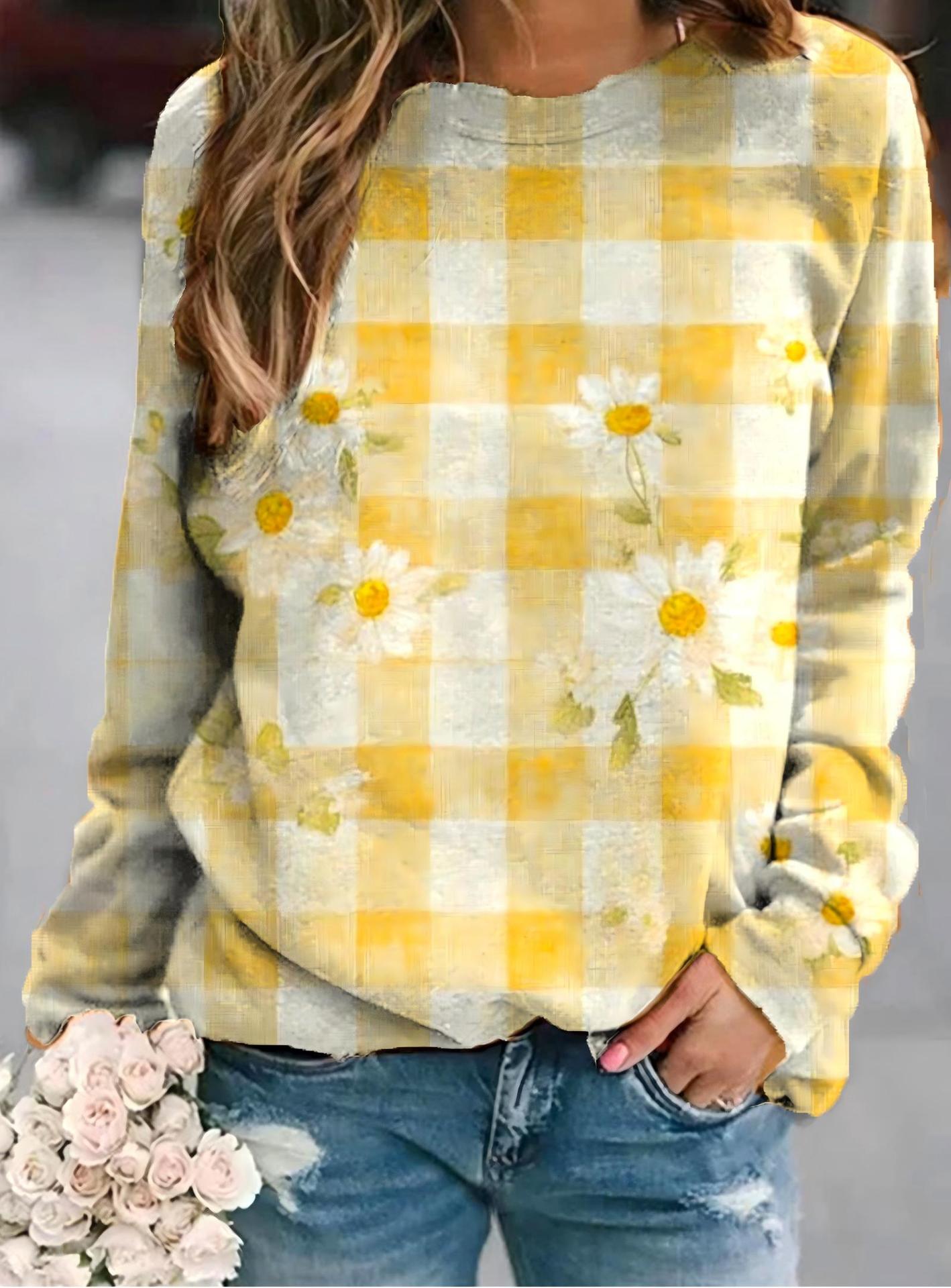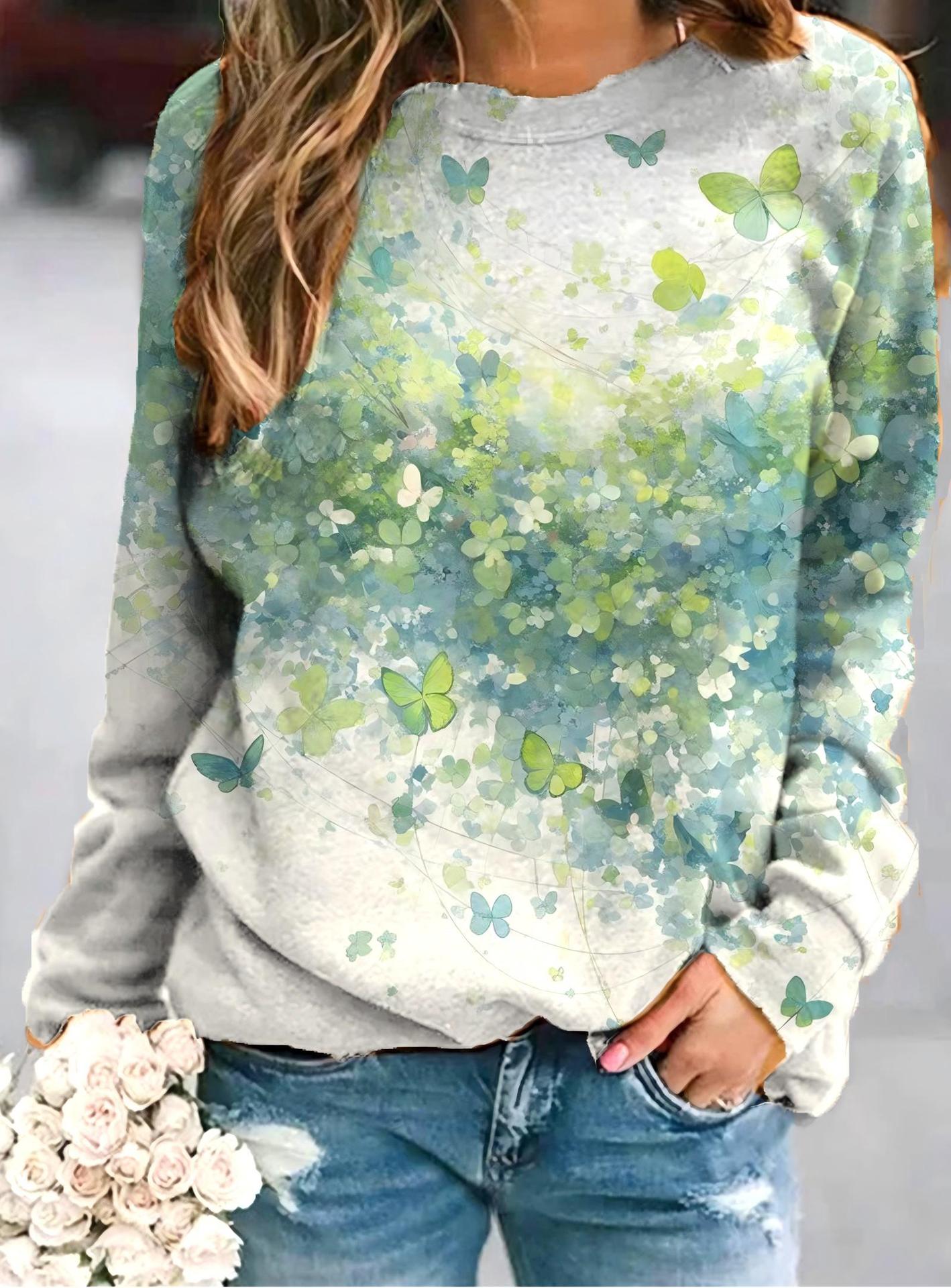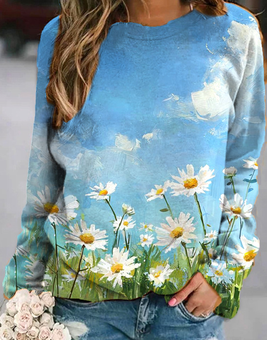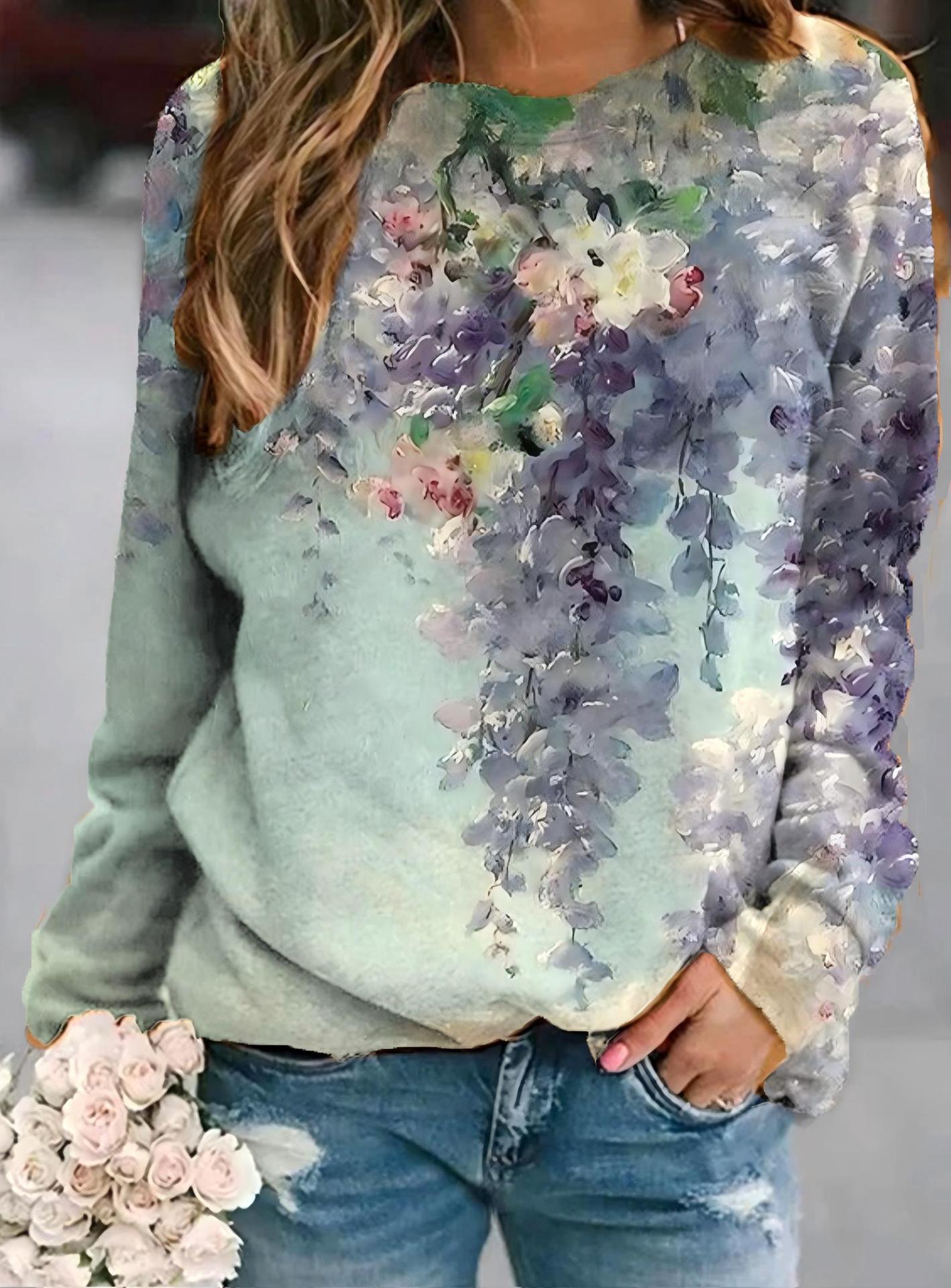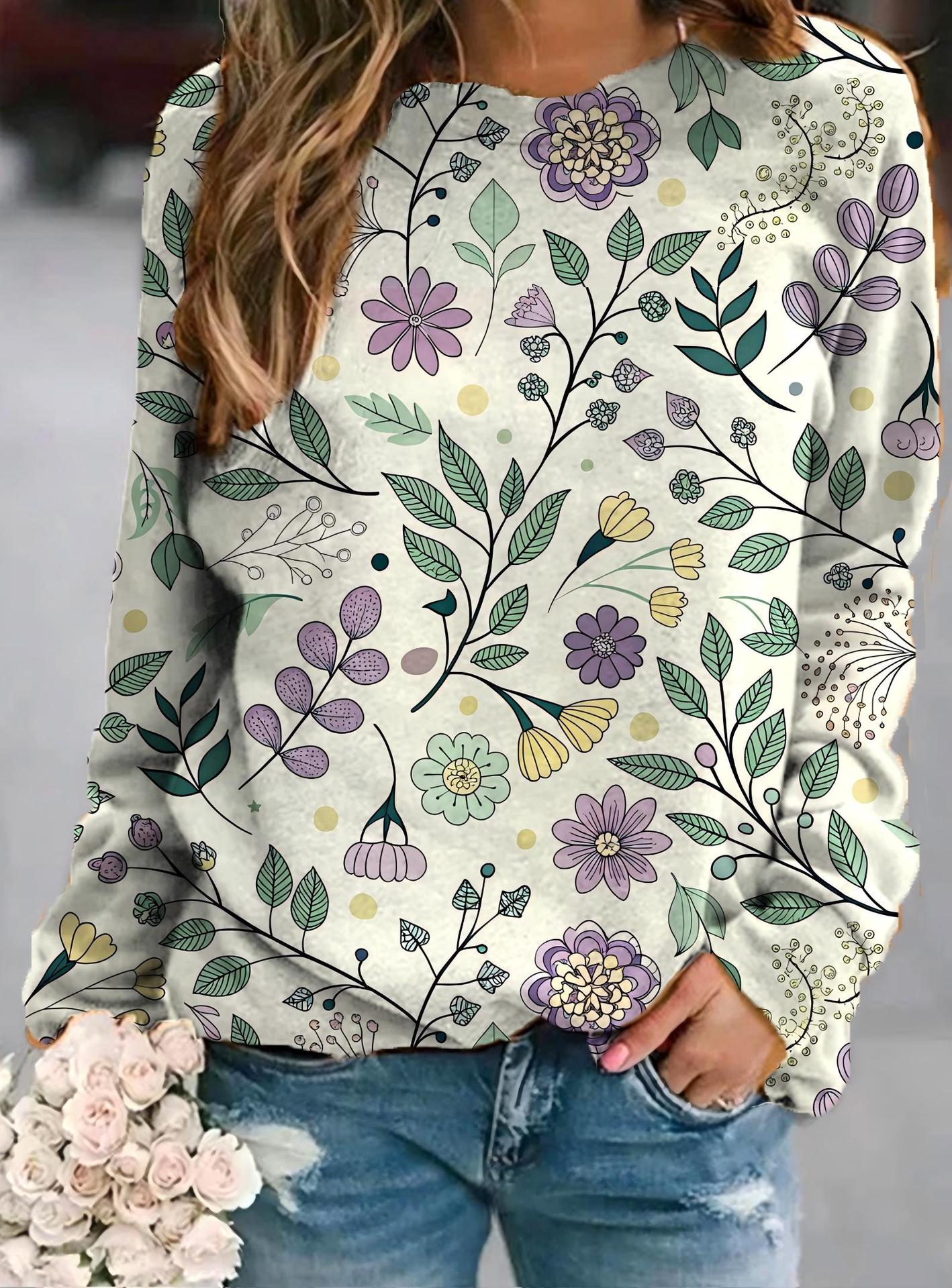 2022 아마존 AliExpress WISH 국경을 넘는 유럽과 미국의 새로운 꽃 인쇄 둥근 목 긴 소매 스웨터 여성 의류스토어 가기