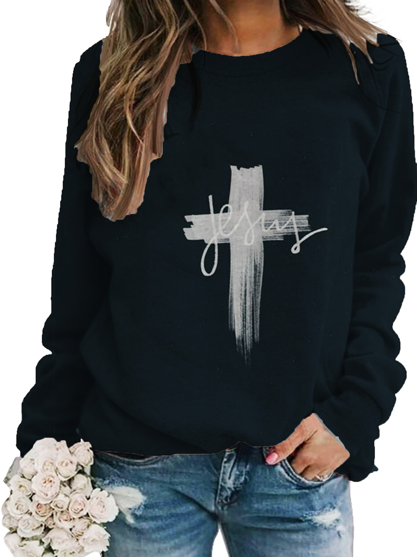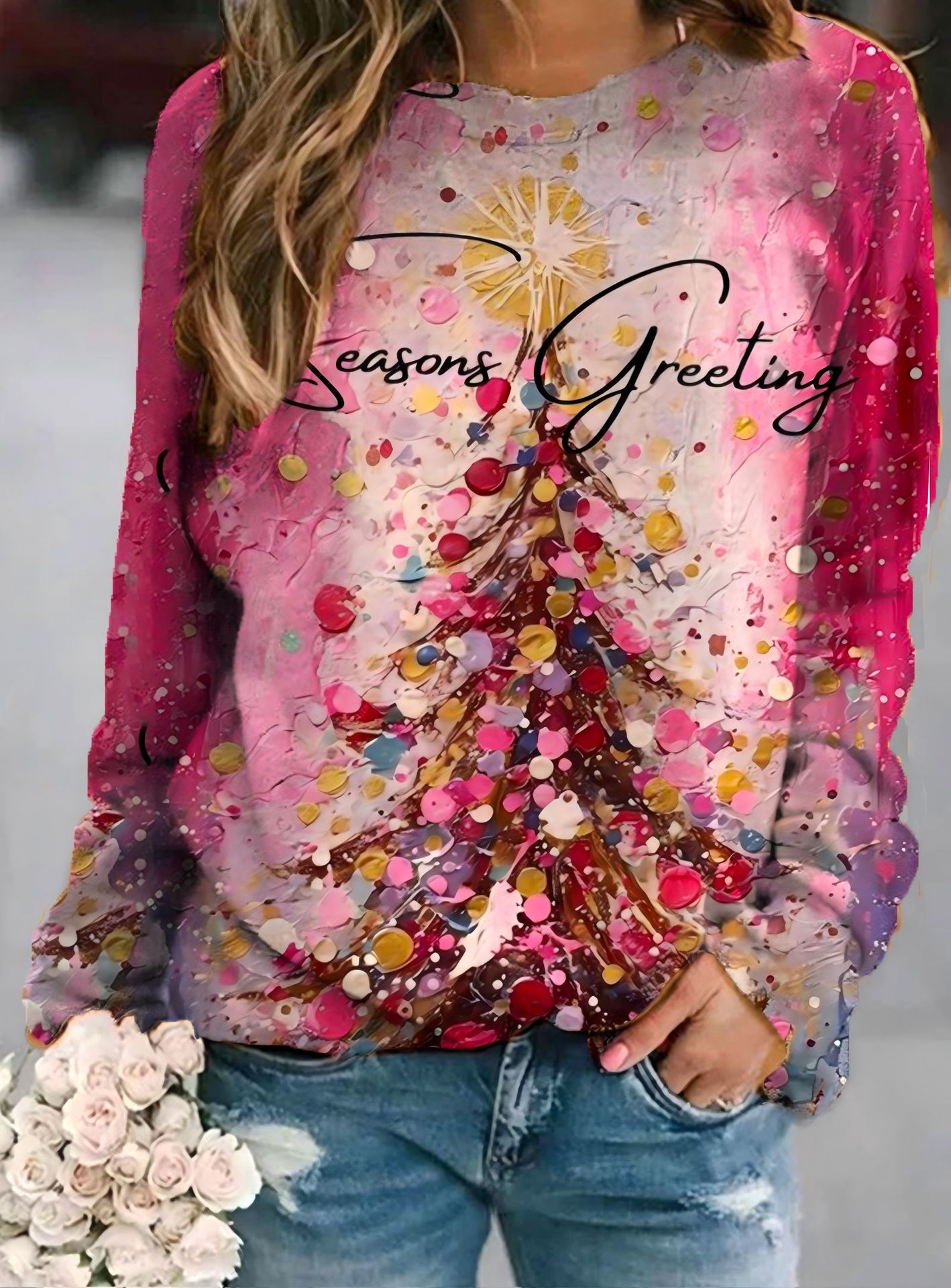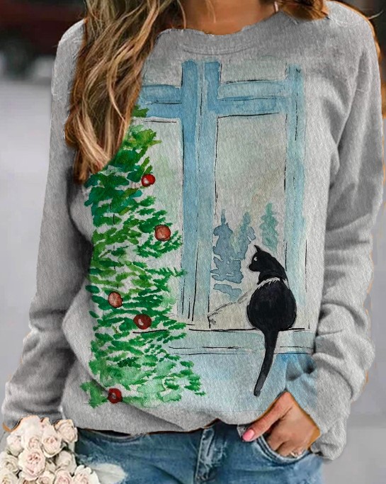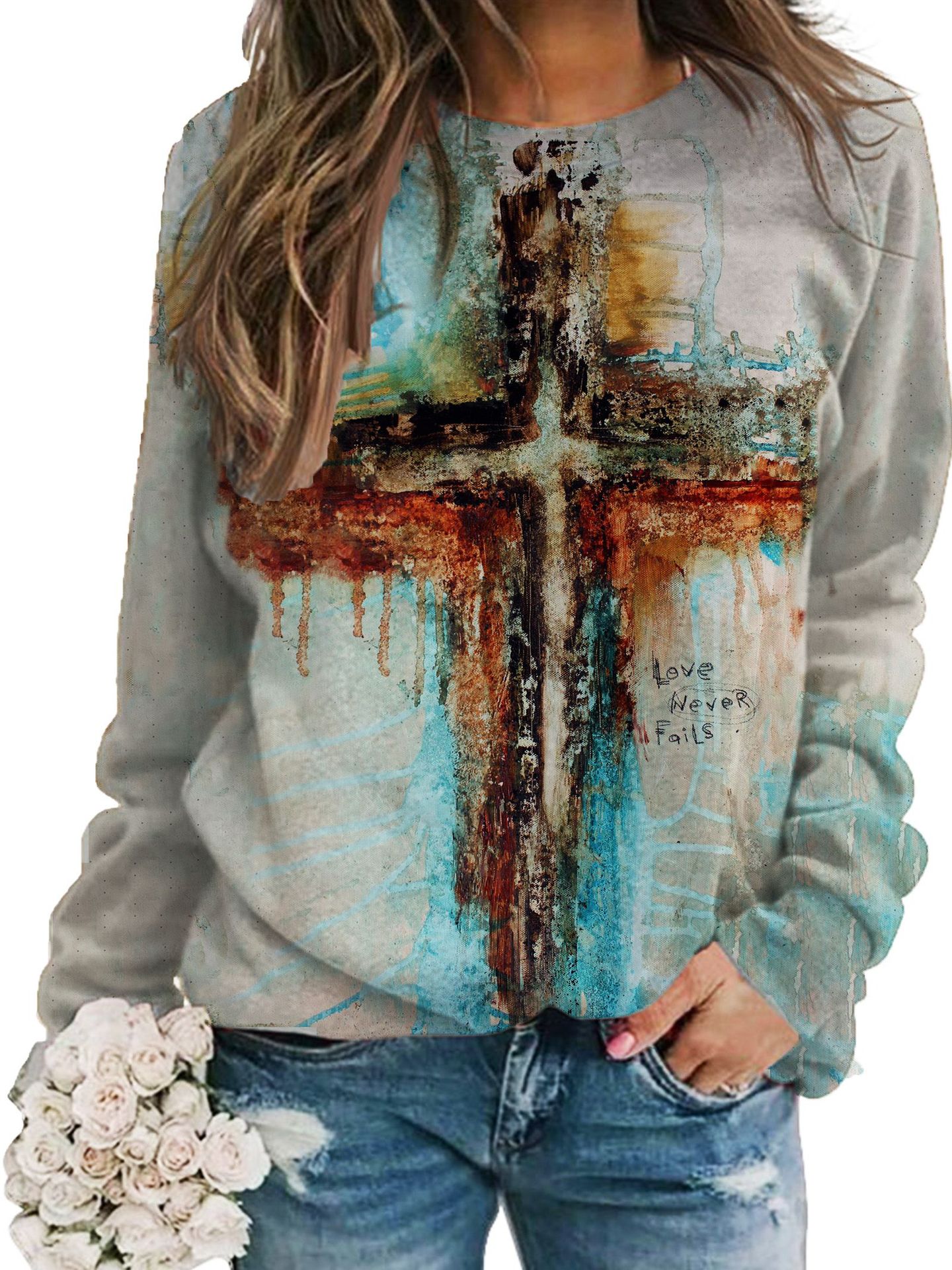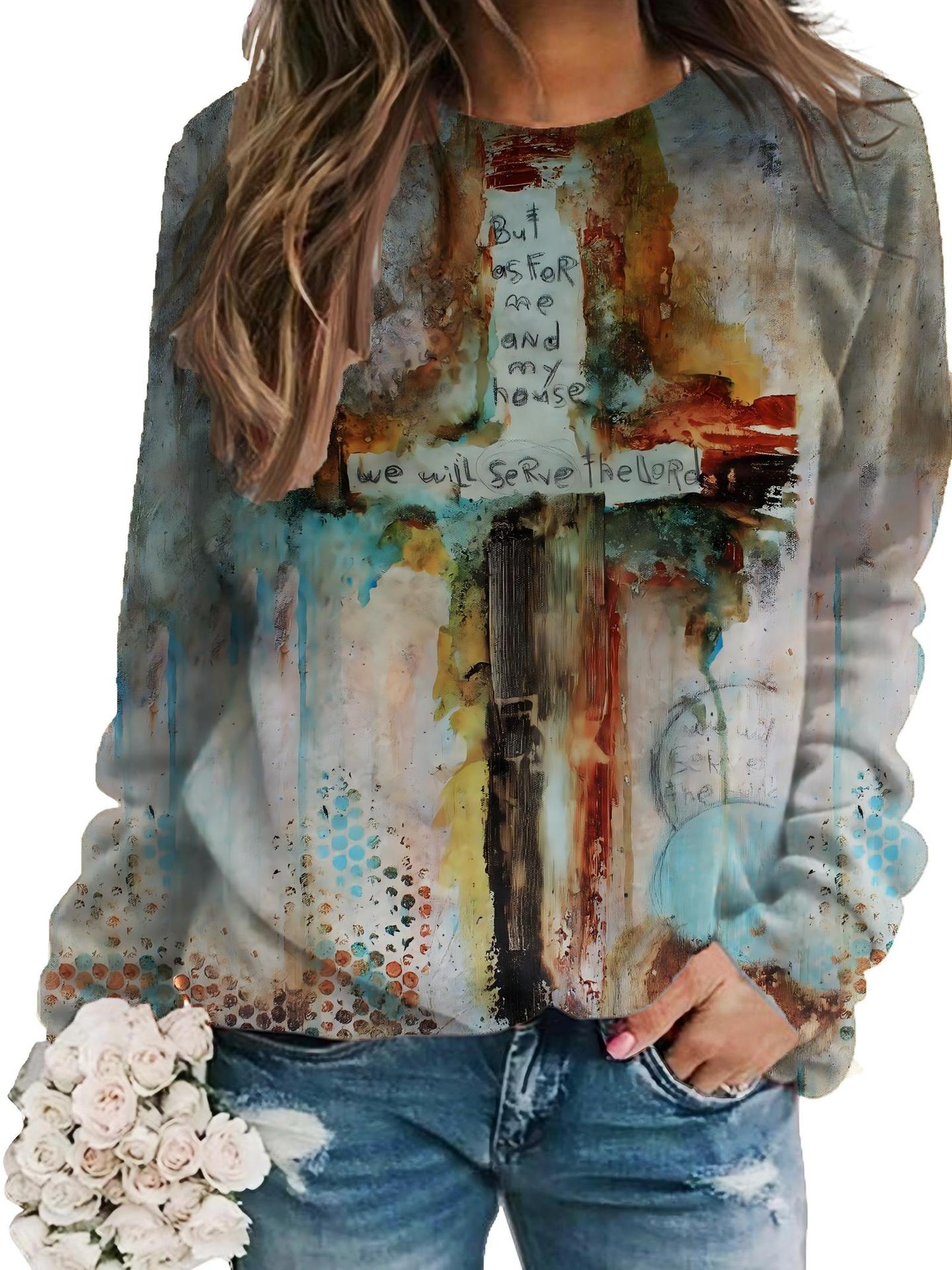 2022 아마존 AliExpress WISH 국경을 넘는 유럽과 미국의 새로운 꽃 인쇄 둥근 목 긴 소매 스웨터 여성 의류스토어 가기