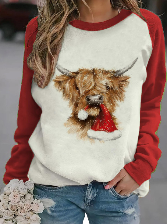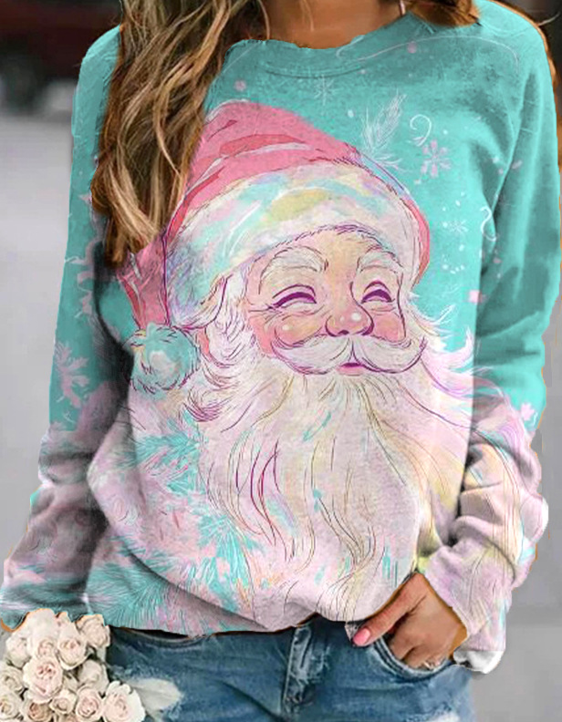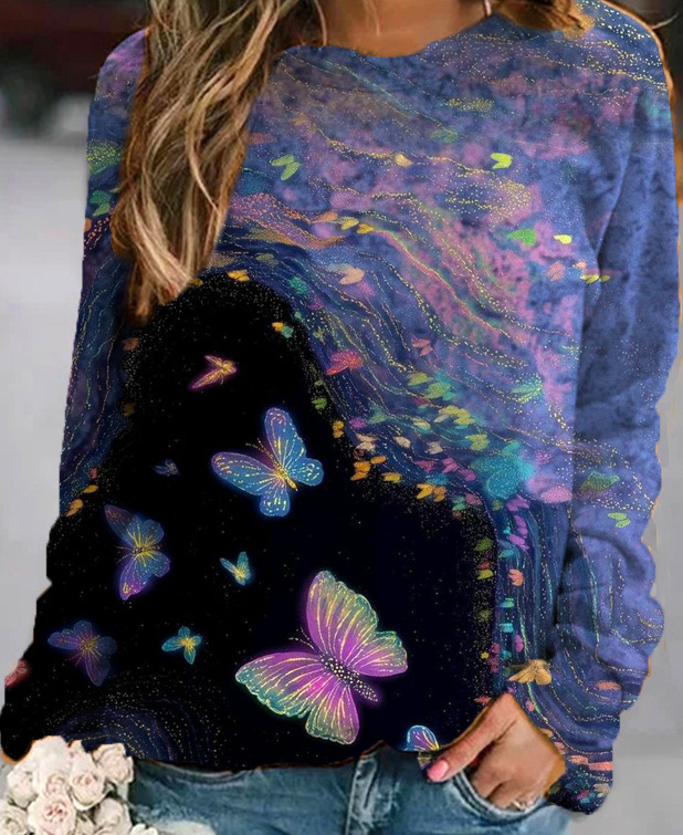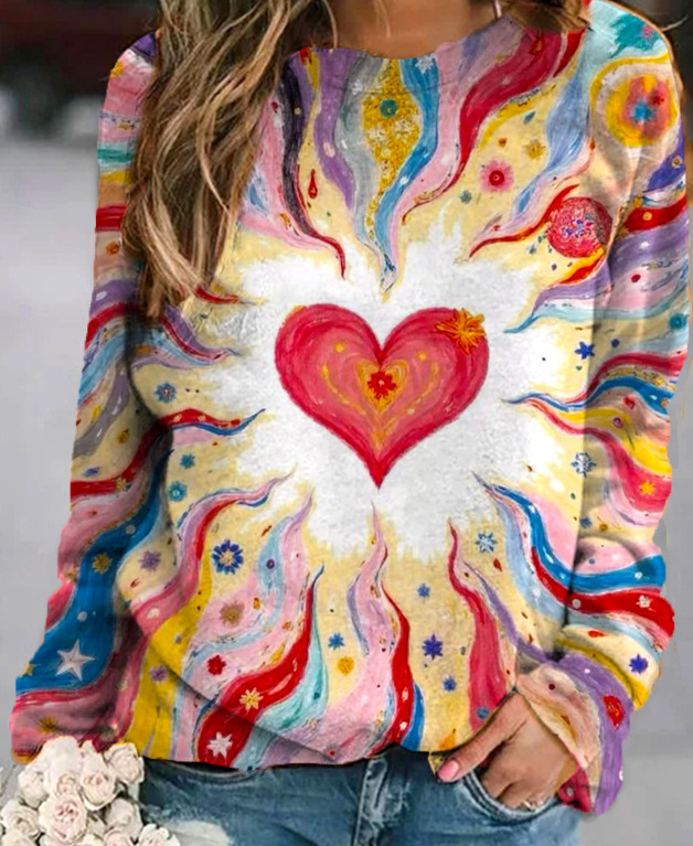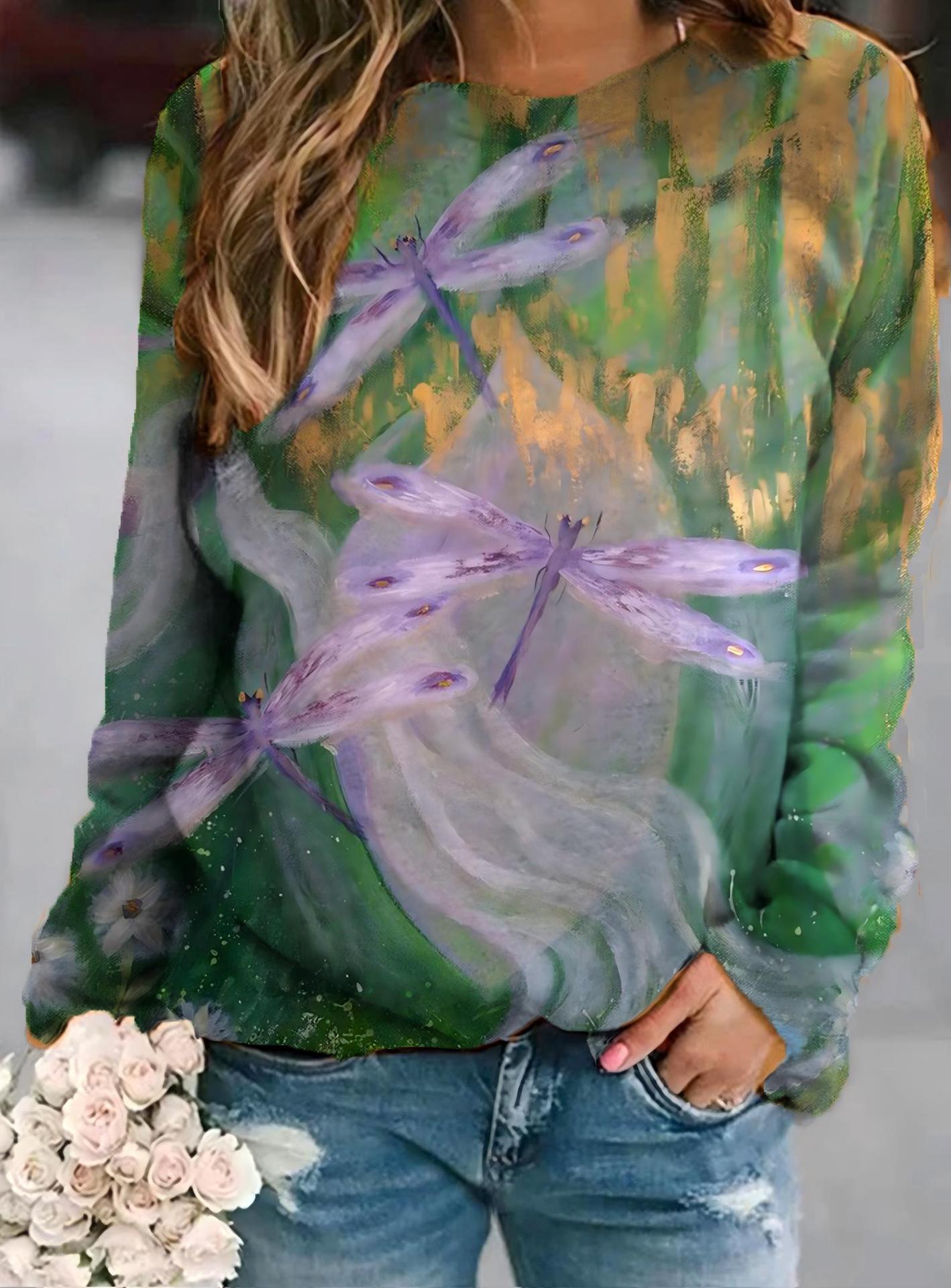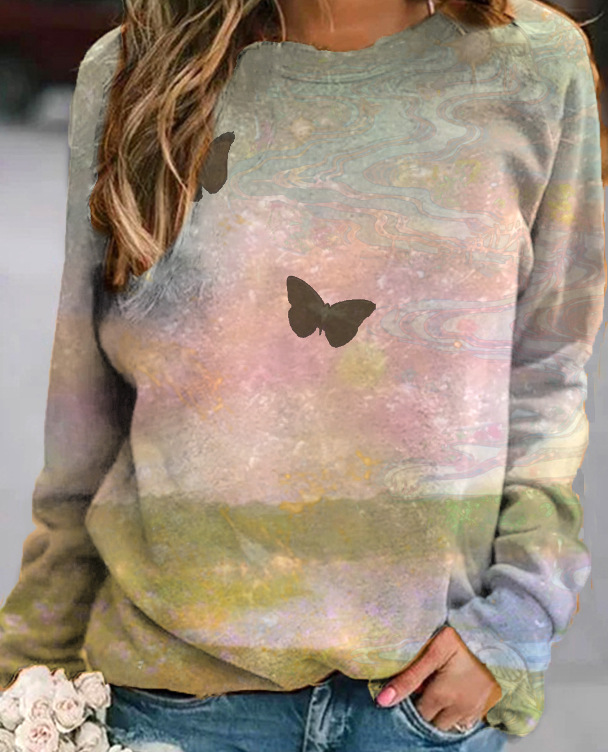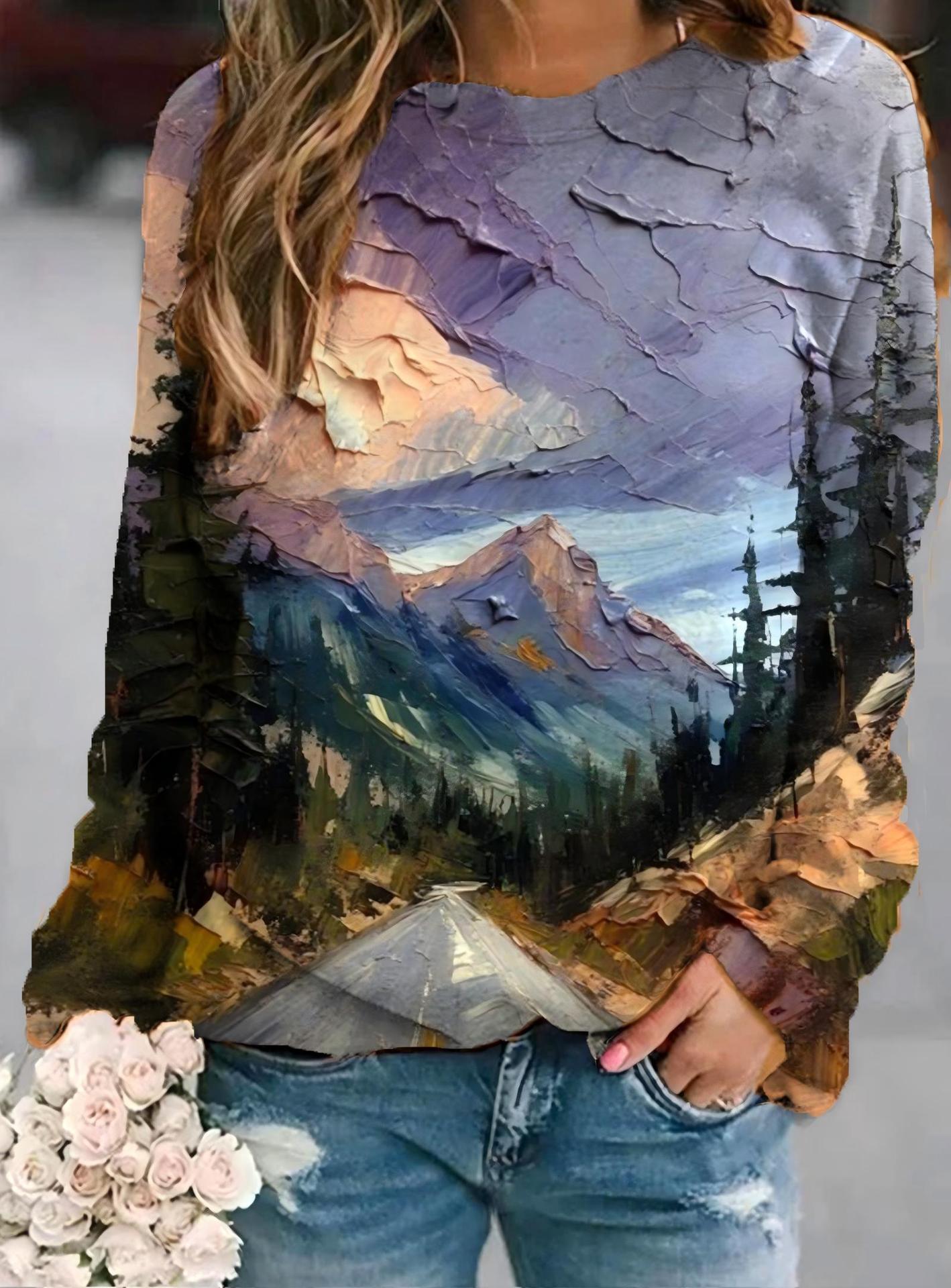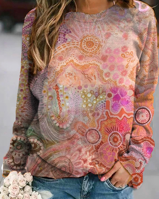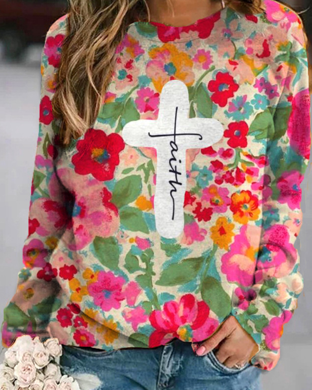2022 아마존 AliExpress WISH 국경을 넘는 유럽과 미국의 새로운 꽃 인쇄 둥근 목 긴 소매 스웨터 여성 의류