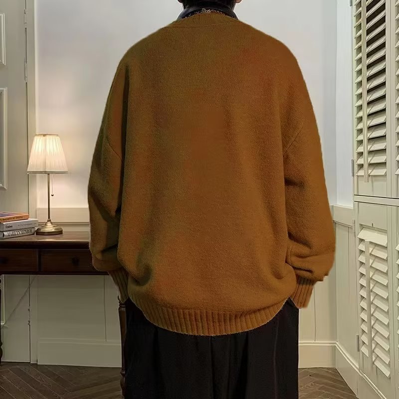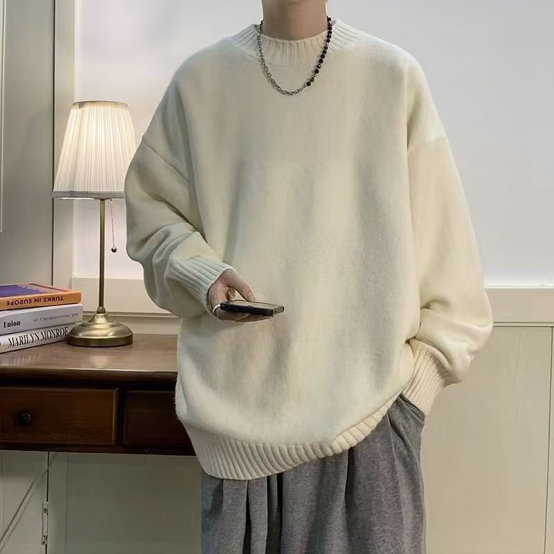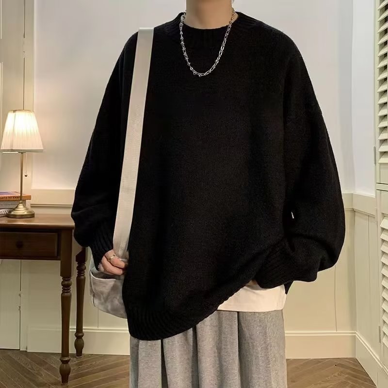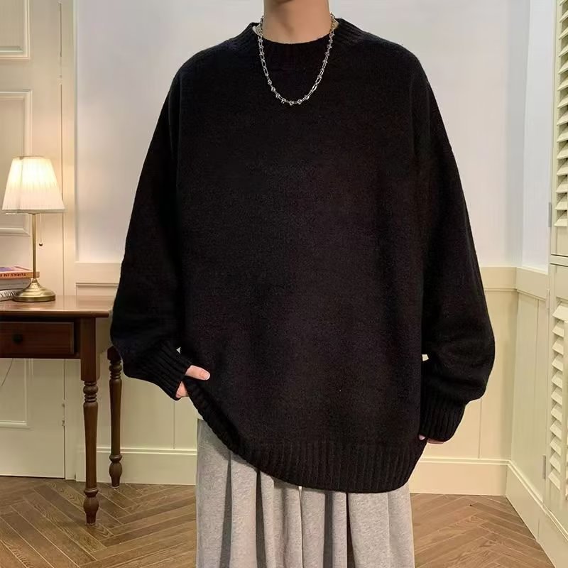 블랙 따뜻한 니트 스웨터 남자의 겨울 두꺼운 느슨한 캐주얼 탑 기모 게으른 스타일 학생 기본 셔츠스토어 가기