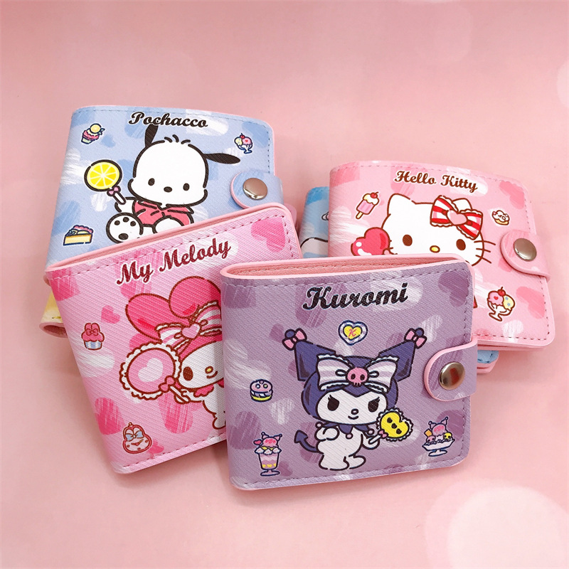 새로운 PU 짧은 2 폴드 지갑 사랑 활 PC 개 쿨로 미 제미니 버튼 카드 홀더 지갑스토어 가기