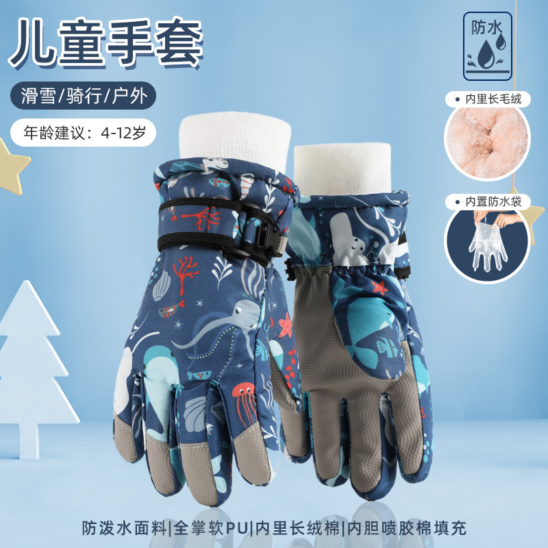 어린이 장갑 스키 겨울 플러스 벨벳 따뜻하고 방수 4-12 세 소년과 소녀 장갑 겨울 도매 사이클링 장갑