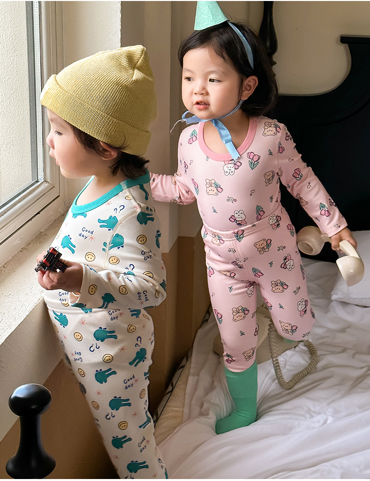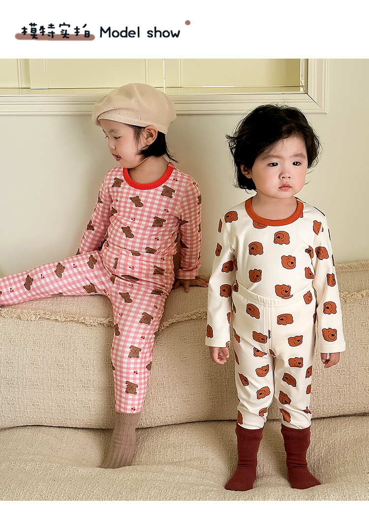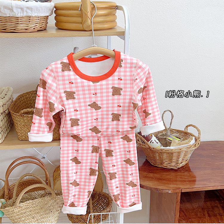 아기의 가을과 겨울 벨벳 열 속옷 소년과 소녀 잠옷 뼈없는 가정 옷을 세트 어린이 가을 옷과 바지스토어 가기