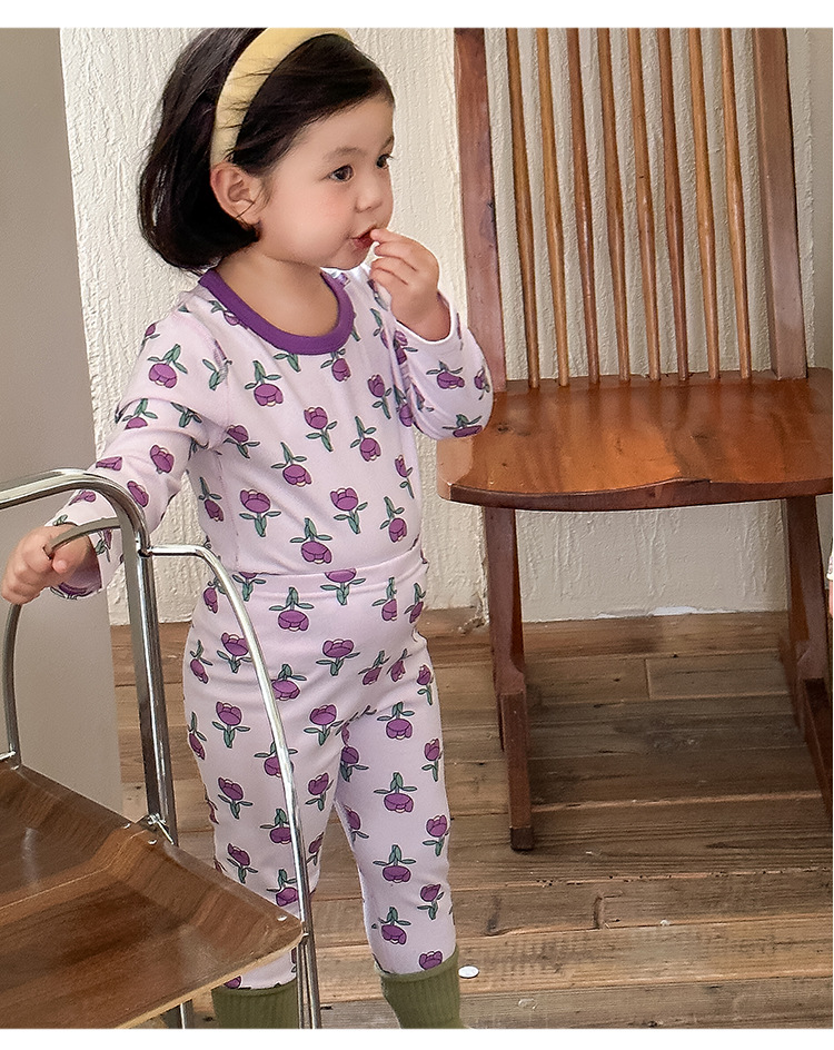 아기의 가을과 겨울 벨벳 열 속옷 소년과 소녀 잠옷 뼈없는 가정 옷을 세트 어린이 가을 옷과 바지