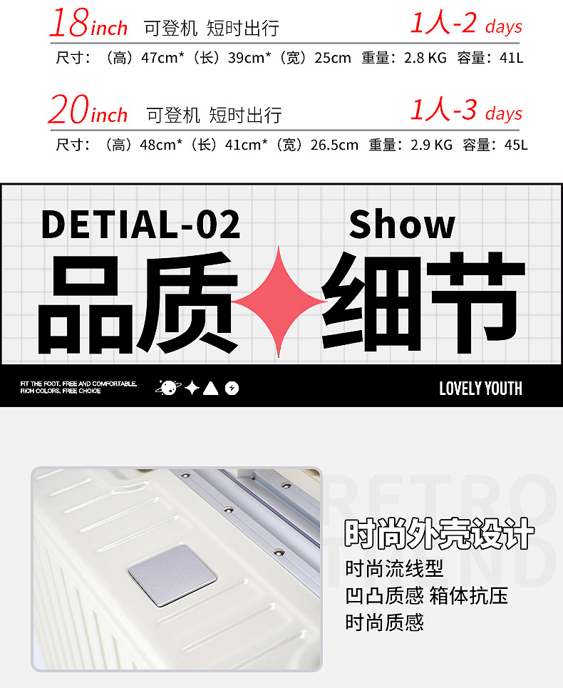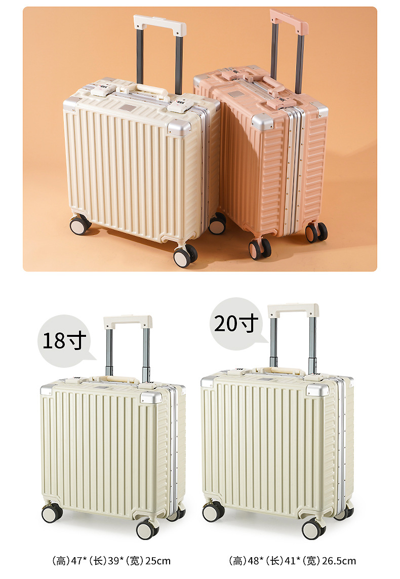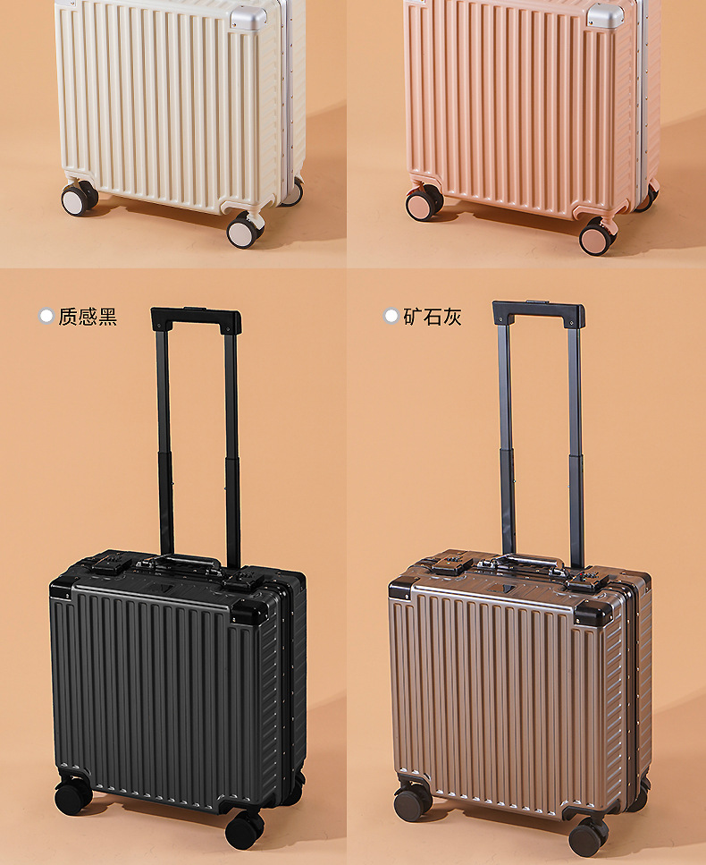 여성용 여행가방 18inch 소형 알루미늄 프레임 트롤리 케이스 남성용 20inch 여행용 튼튼하고 내구성 있는 기내용 캐리어 미니멀하고 고급스러운 디자인