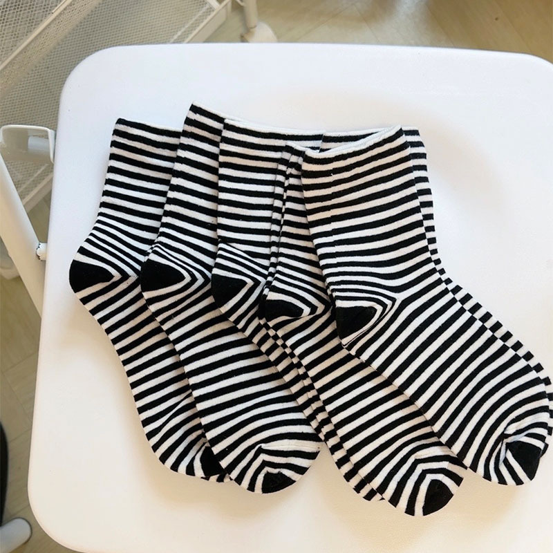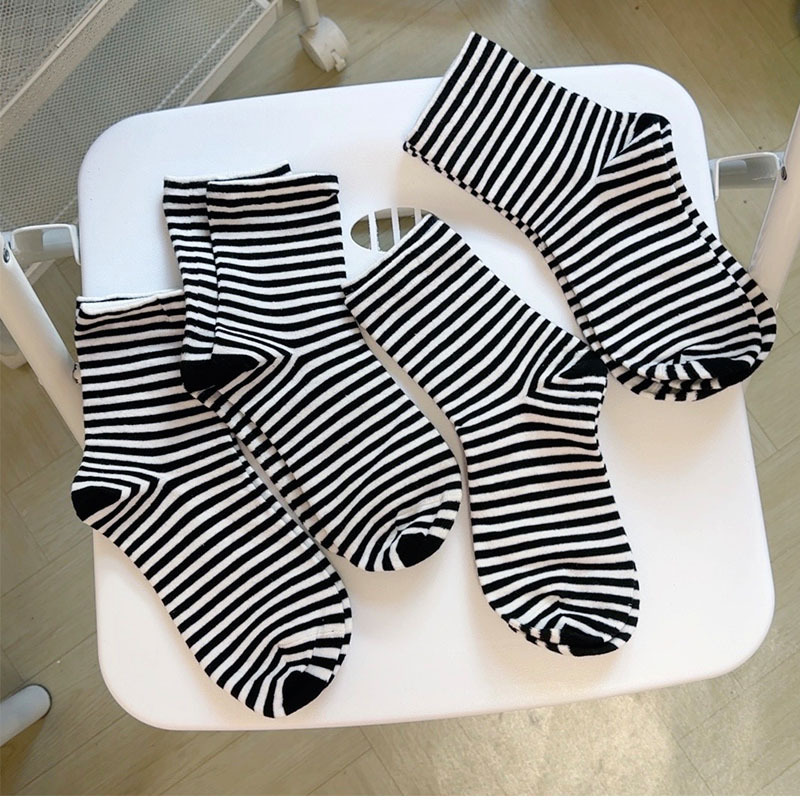 일본식 대학식 흑백 대비 양말 여성용 트렌디한 봄 가을 한국식 기본 심플 올매치 스트라이프 말뚝 양말스토어 가기