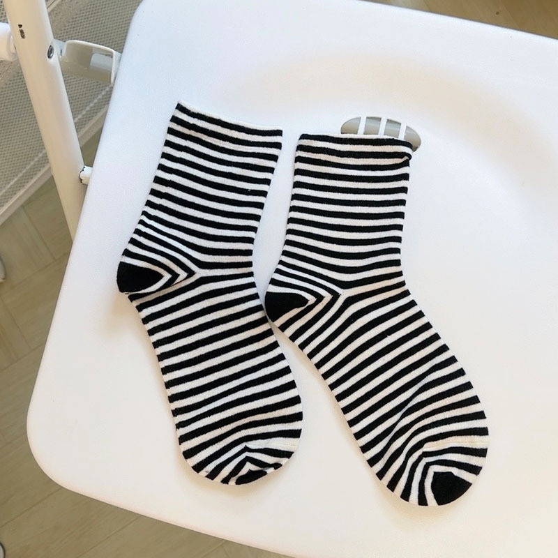 일본식 대학식 흑백 대비 양말 여성용 트렌디한 봄 가을 한국식 기본 심플 올매치 스트라이프 말뚝 양말