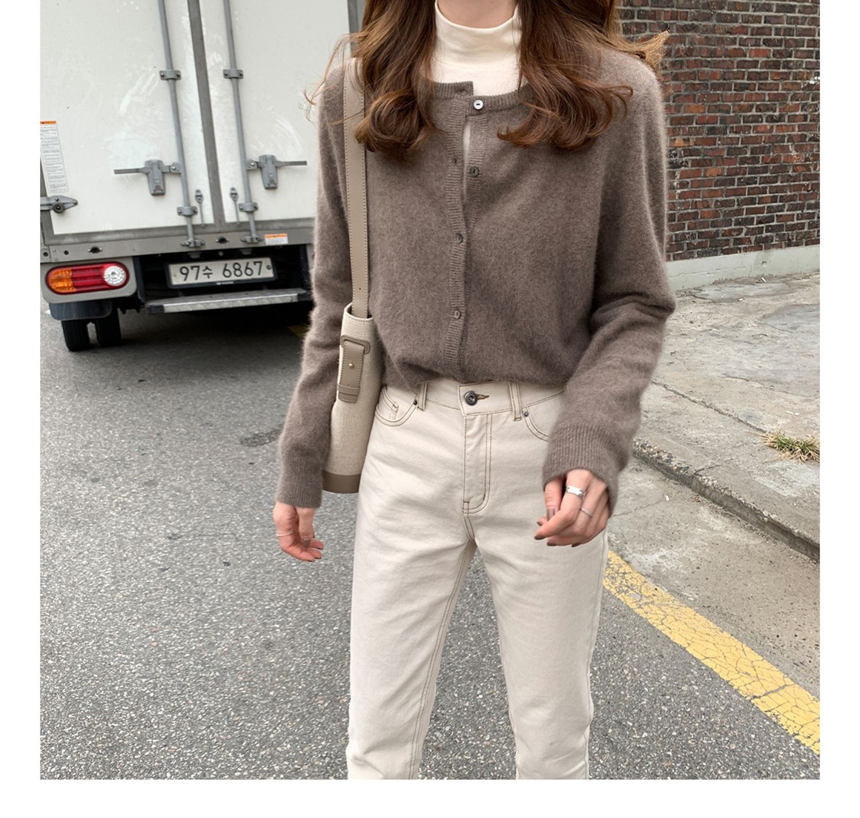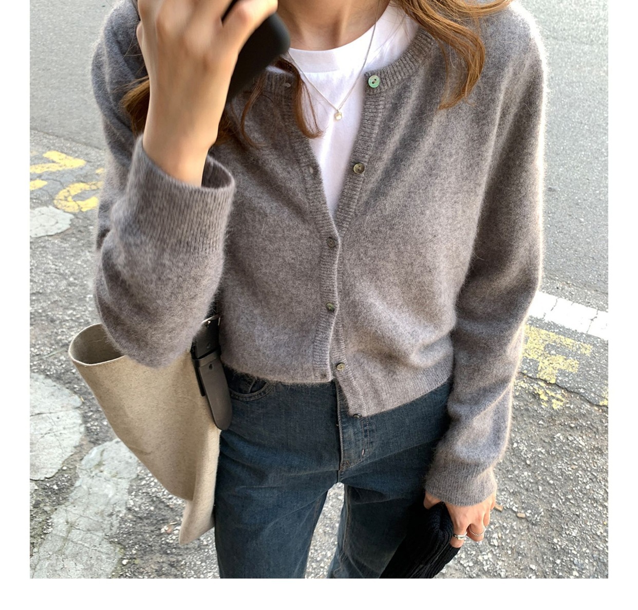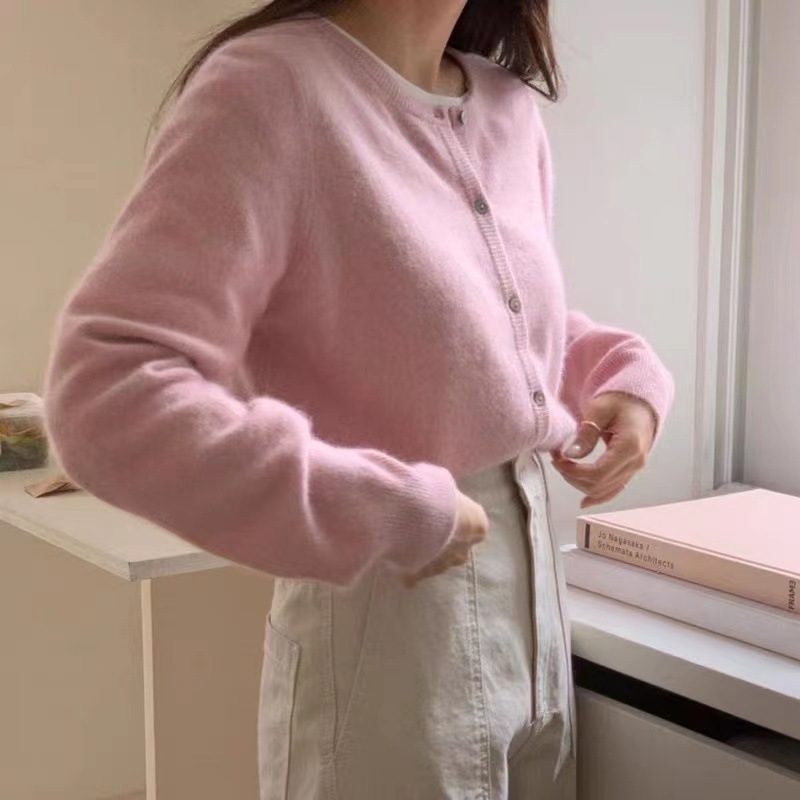 너구리털 짧은 니트 가디건 가을 겨울 여성복 2025 신상 라운드넥 레이어드 베이스 스웨터 자켓 상의스토어 가기