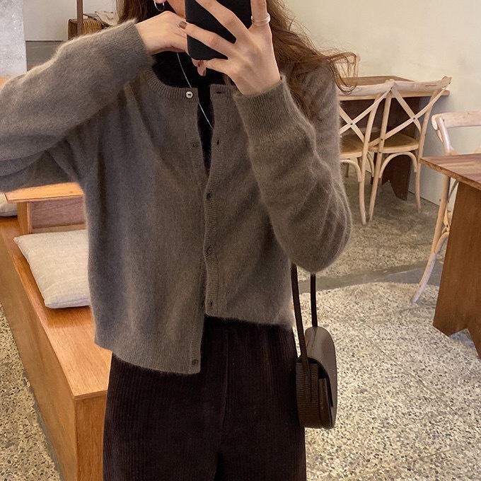 너구리털 짧은 니트 가디건 가을 겨울 여성복 2025 신상 라운드넥 레이어드 베이스 스웨터 자켓 상의