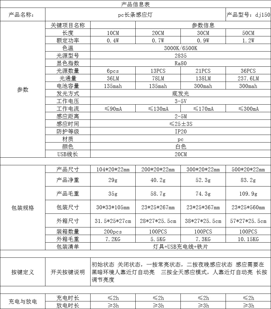 • 50cm 충전 모델-따뜻한 조명-유도 + 일정 조명 + 스위치