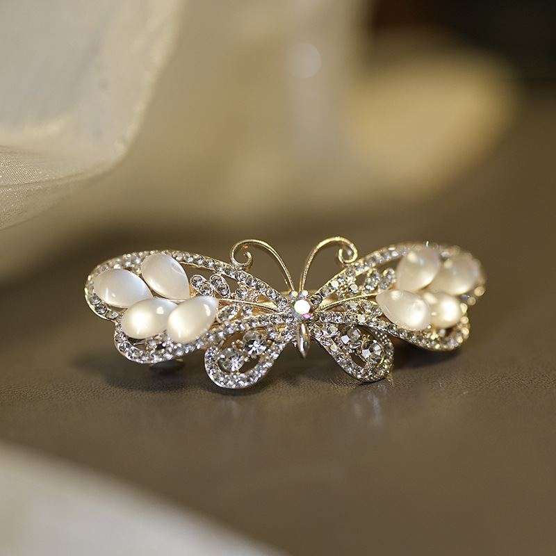 • 6.5cm-캣츠 아이 4 개의 작은 나비 모조 다이아몬드 스프링 클립