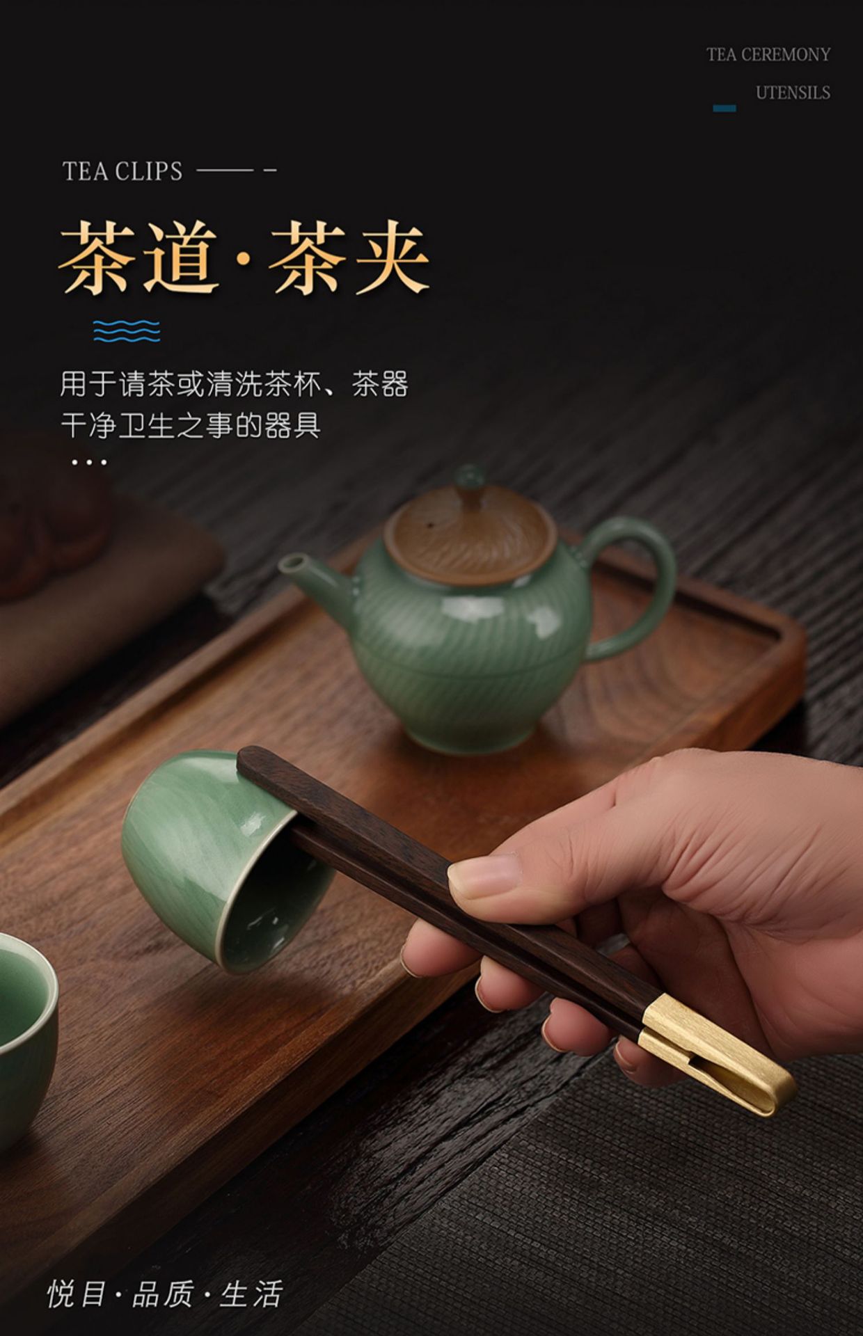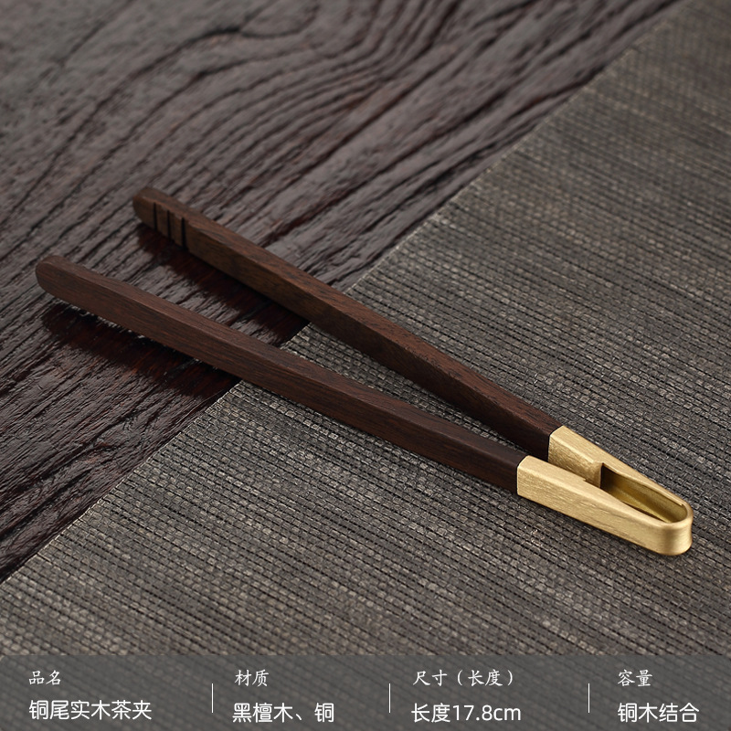 황동 내장 단단한 나무 차 클립 탄성 차 핀셋 비 슬립 차 만들기 도구 티 테이블 쿵푸 차 세트 다도 액세서리스토어 가기