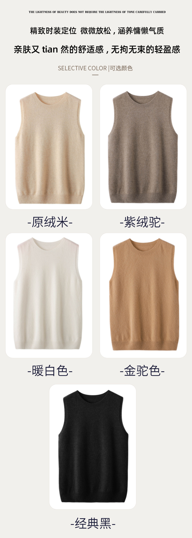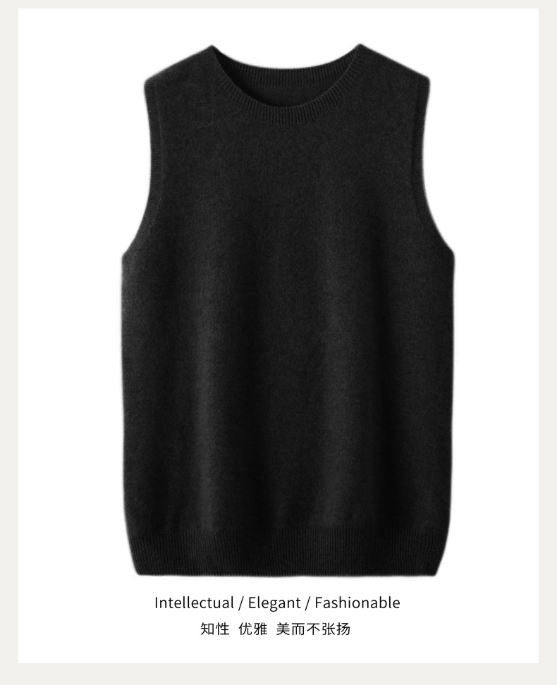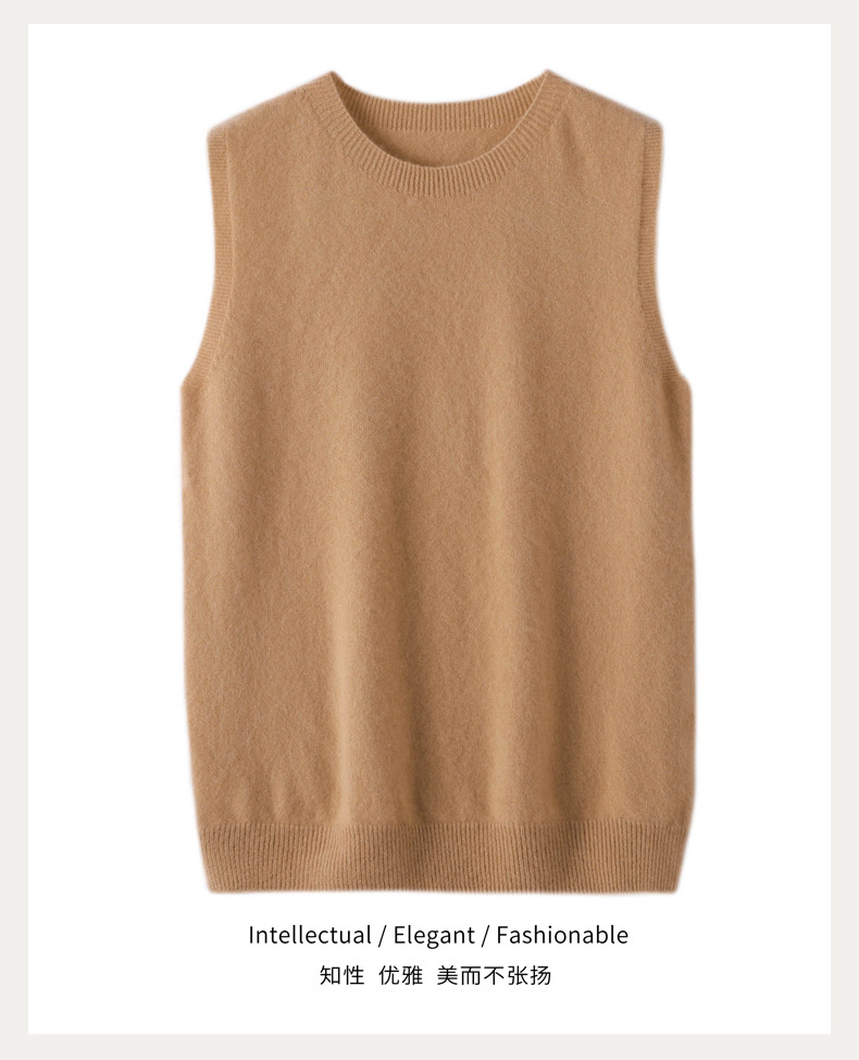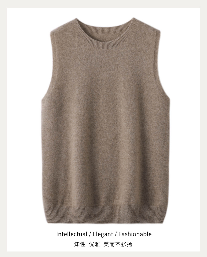 가을과 봄 새로운 순수 울 스웨터 조끼 여자의 라운드 넥 민소매 니트 슬림 조끼 짧은 느슨한 카멜 스타일