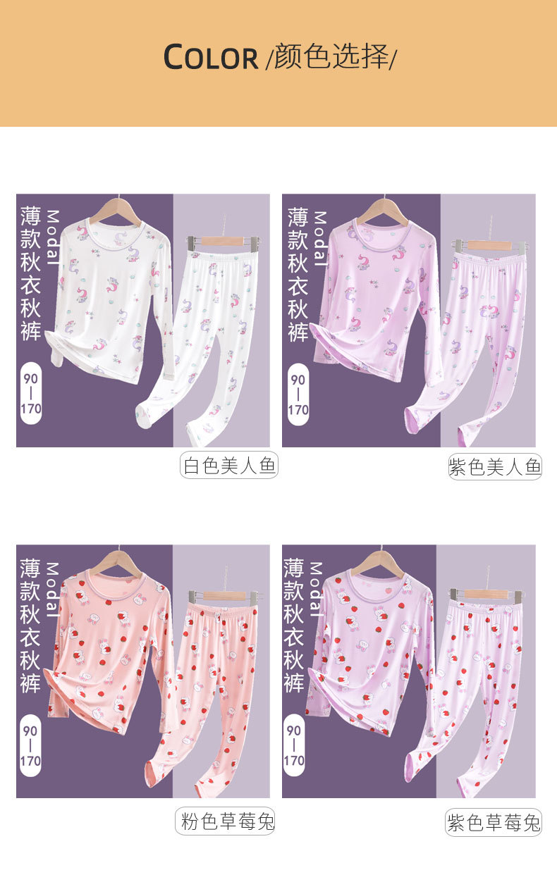 60 Modal 여아 긴 소매 잠옷 어린이 여아 아기 '중년 및 노인 어린이 가을과 겨울 얇은 가정 옷 기본 세트