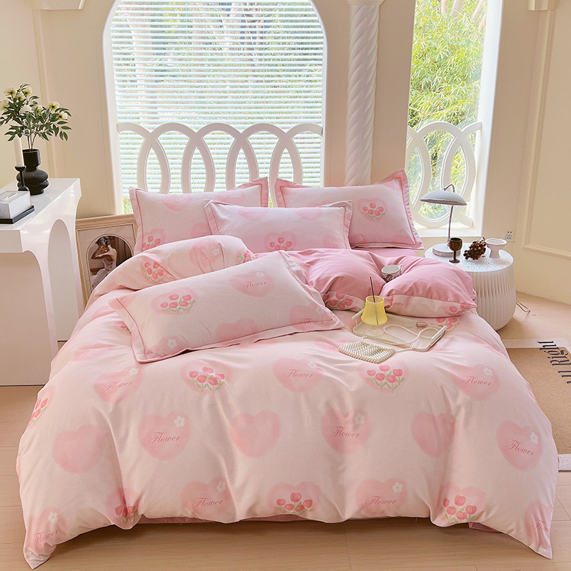 새로운면 샌딩 인쇄 4 피스 침구 키트 침대 시트 퀼트 커버 도매 작은 신선한 기숙사스토어 가기