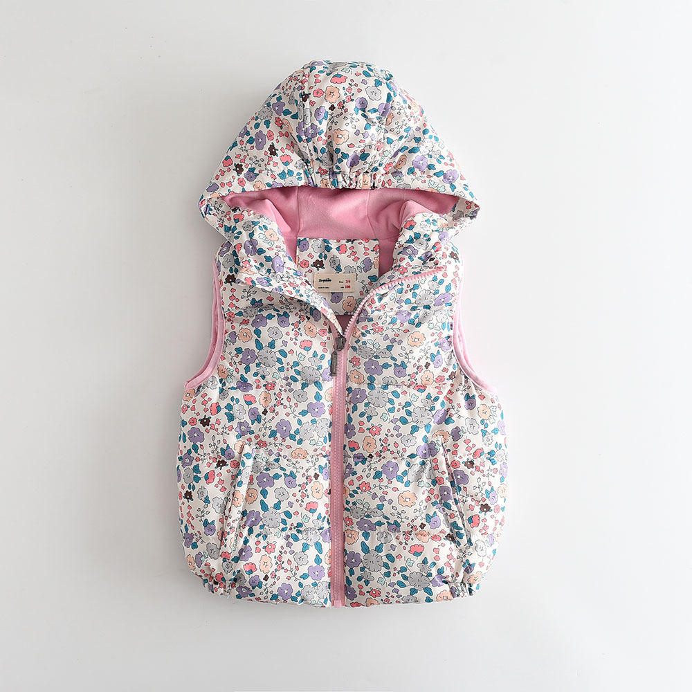 꽃 프린트 소녀 벨벳 두꺼운 후드 조끼 코튼 조끼 2024 겨울 새 스타일 0804-02