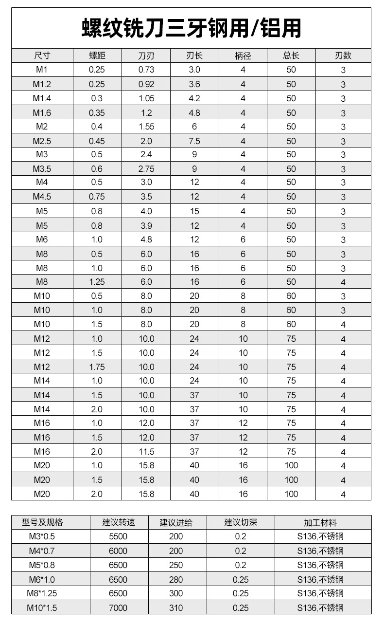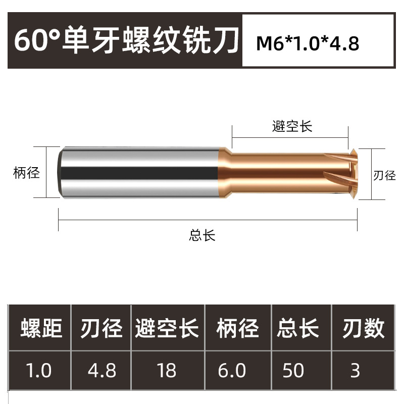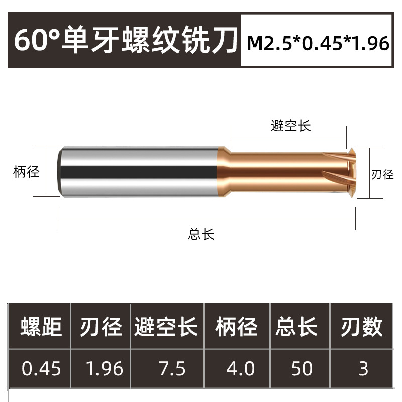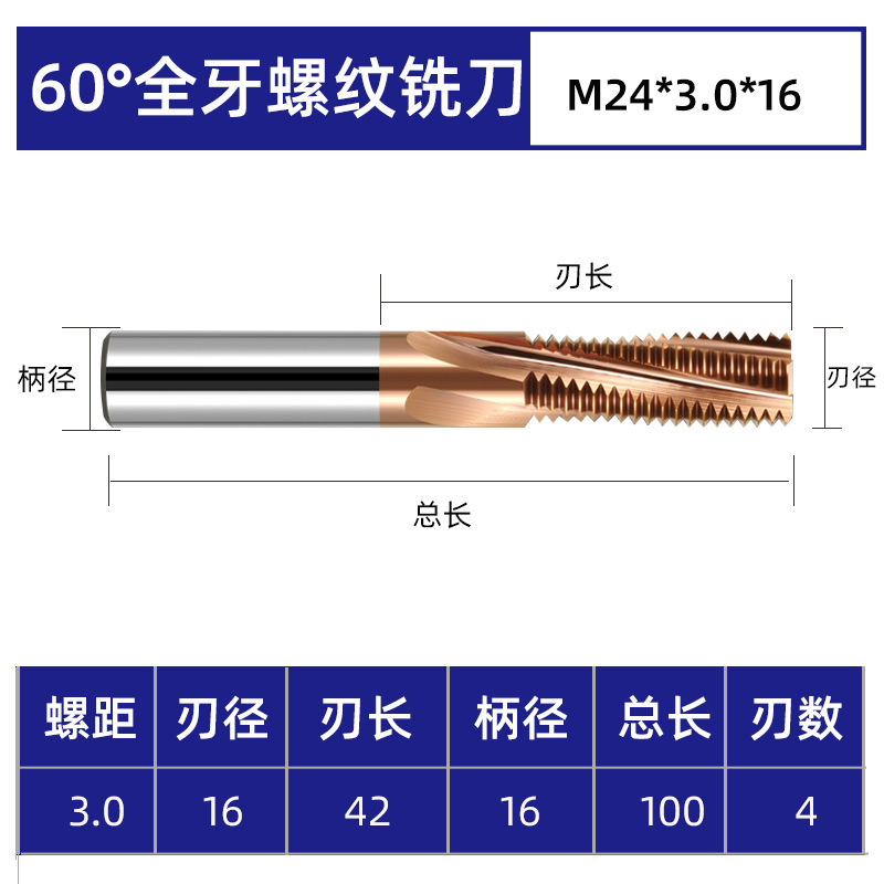 60도 나사형 밀링 커터, 미세 나사 및 굵은 나사 알루미늄 티타늄 합금 밀링 및 태핑 일체형 텅스텐 스틸 나선형 홈 절삭