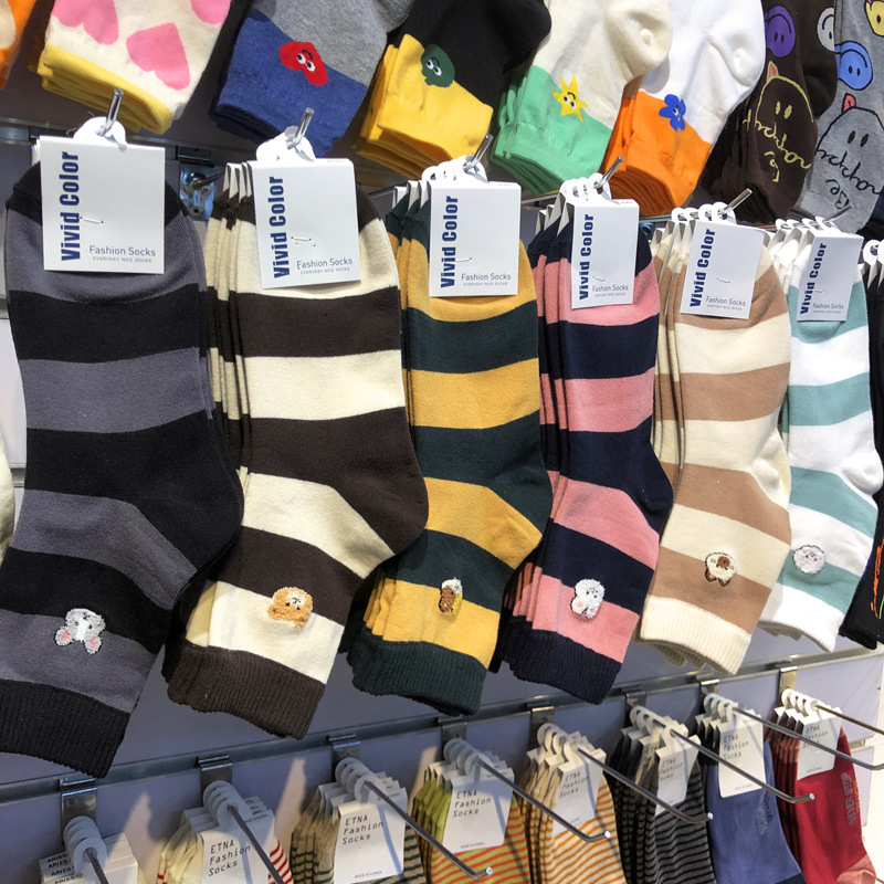 [재고] 한국 2023 새로운 양말 생생한 컬러 매칭 와이드 줄무늬 여아 면 양말 작은 만화 튜브 양말스토어 가기