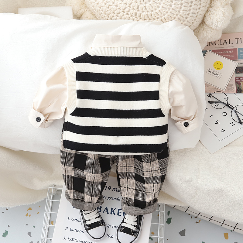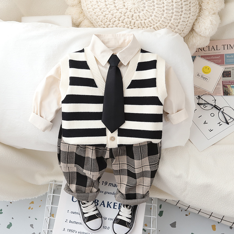 소년 봄 가을 세트 2023 새로운 스타일 웨스턴 스타일 니트 스웨터 조끼 가디건 소년의 쓰리피스 세트 트렌디스토어 가기
