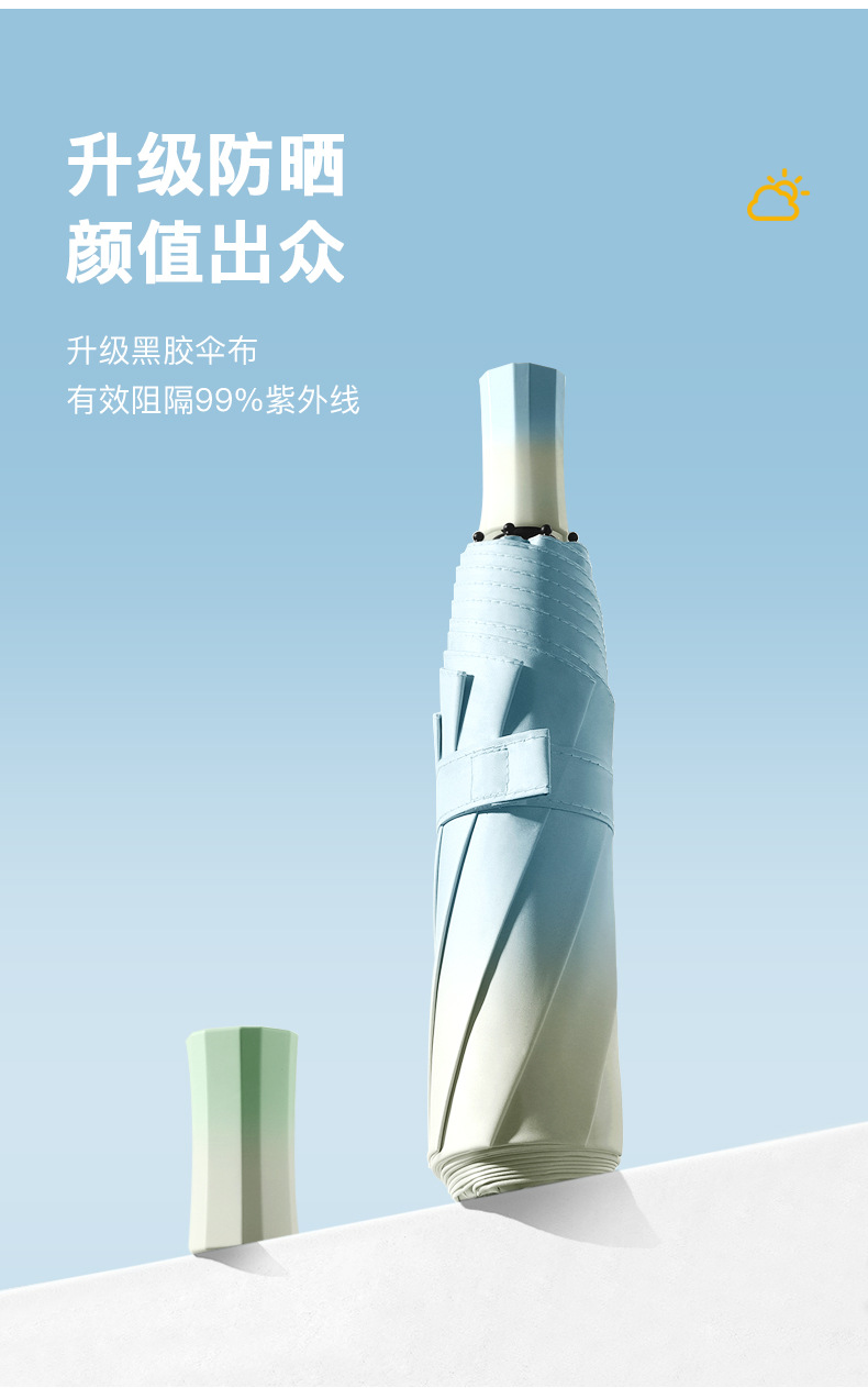 8 뼈 손 오픈 그라디언트 차양 우산 검정 고무 선 스크린 비 이중 목적 맞춤형 태양 우산 자외선 차단 도매스토어 가기