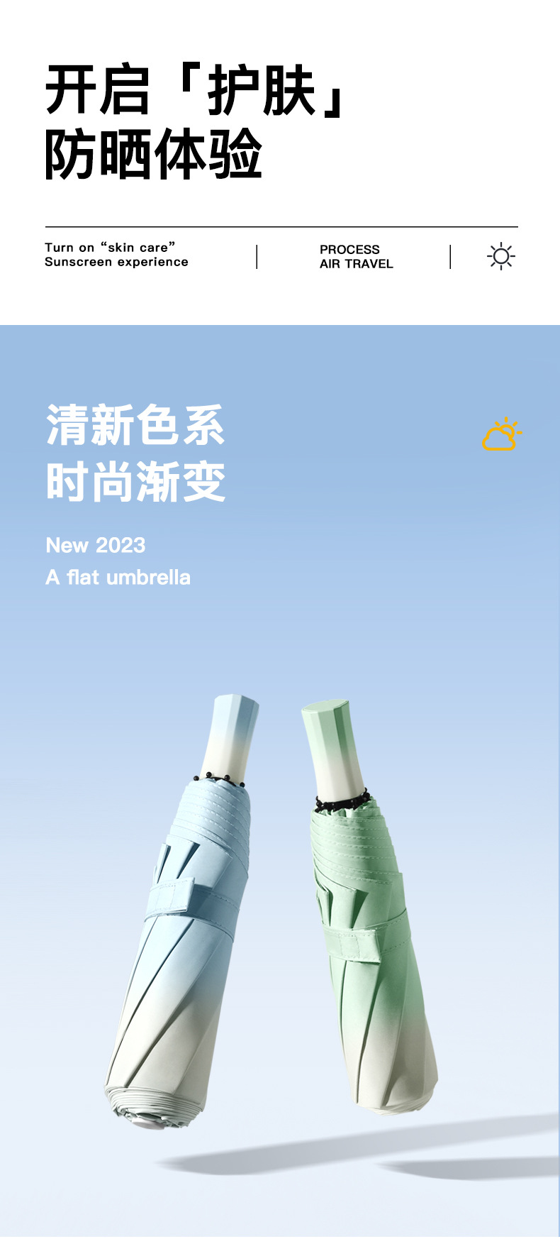 8 뼈 손 오픈 그라디언트 차양 우산 검정 고무 선 스크린 비 이중 목적 맞춤형 태양 우산 자외선 차단 도매