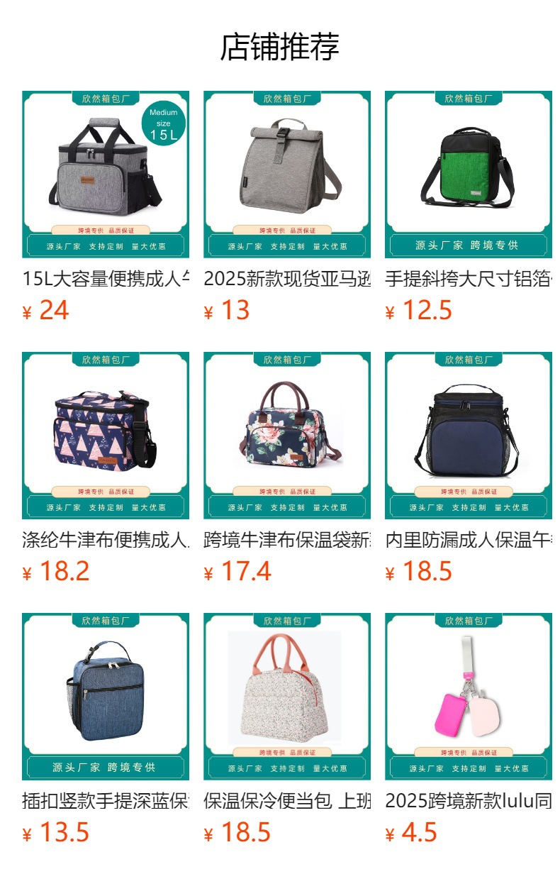 材质: 300D涤纶牛津布+珍珠棉+铝箔内里