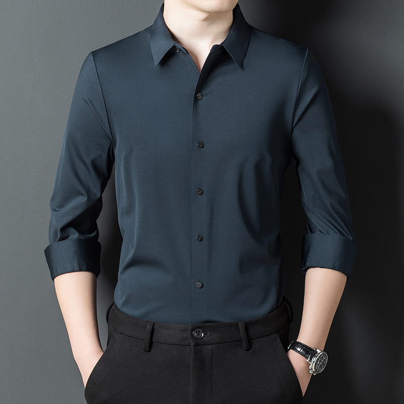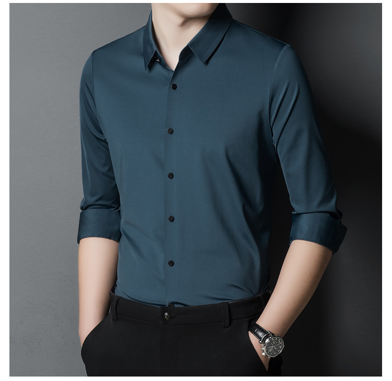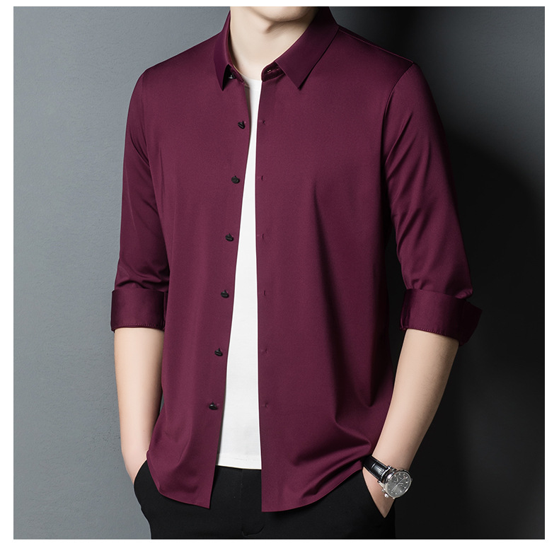 브랜드 고급 뽕나무 실크 긴팔 셔츠 남성용 봄과 가을 얇은 비 다림질 스트레치 단색 중년 비 마킹 셔츠