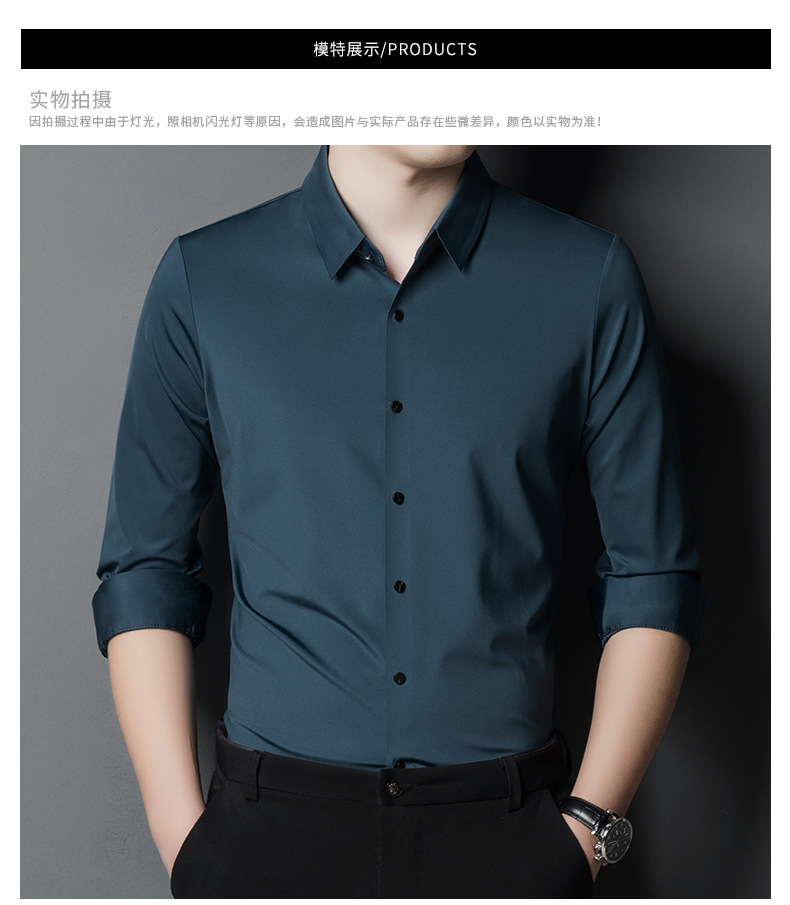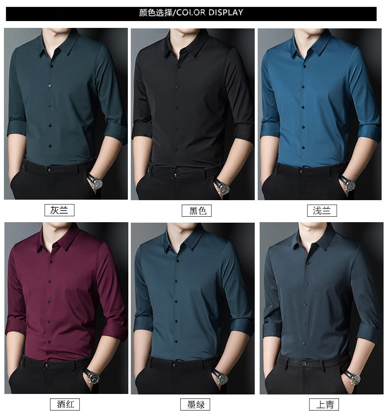 브랜드 고급 뽕나무 실크 긴팔 셔츠 남성용 봄과 가을 얇은 비 다림질 스트레치 단색 중년 비 마킹 셔츠스토어 가기