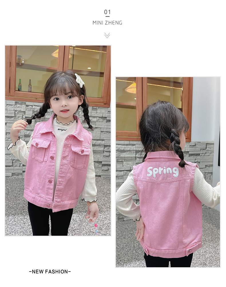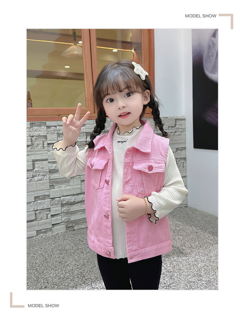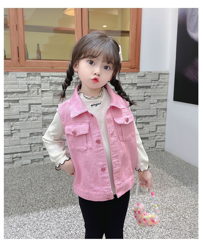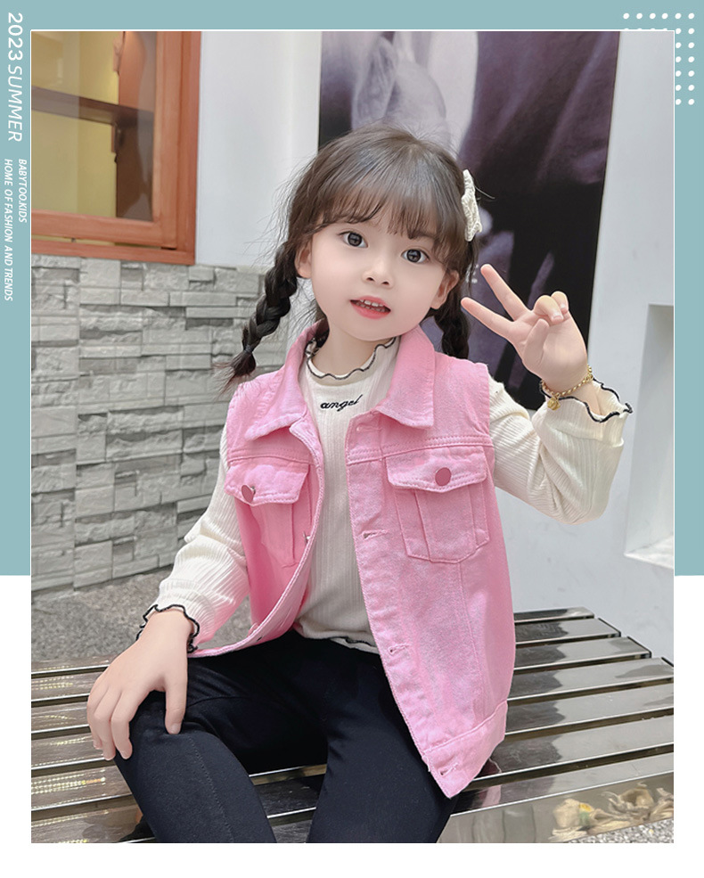 여아 데님 조끼 봄과 가을 어린이 아기 조끼 한국식 중소 어린이 여성 아기 코트 조끼
