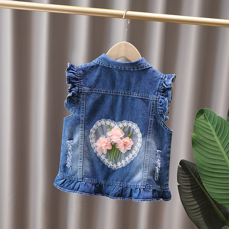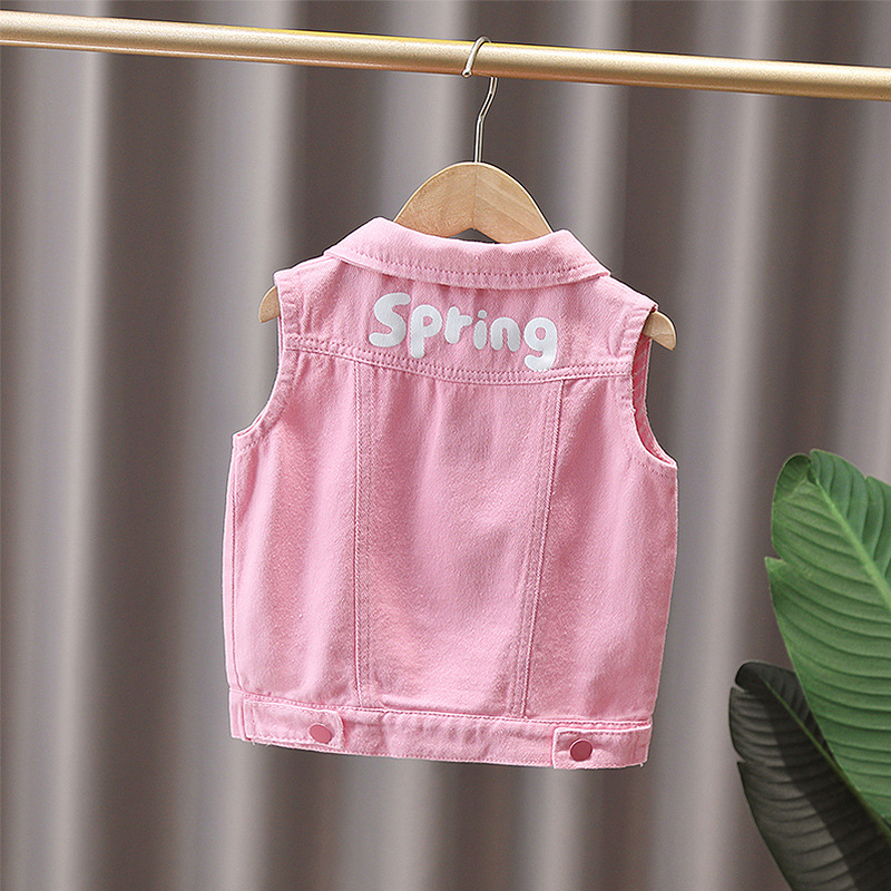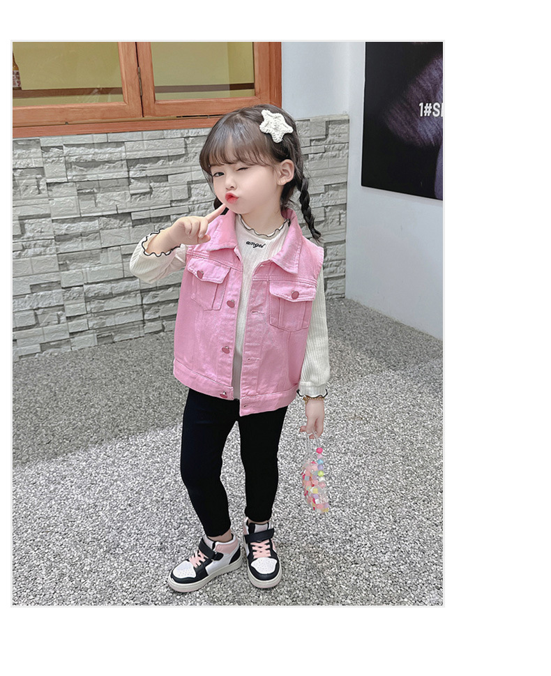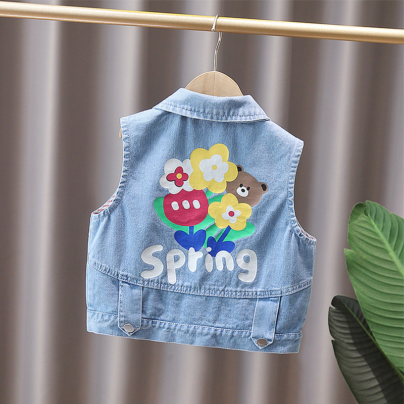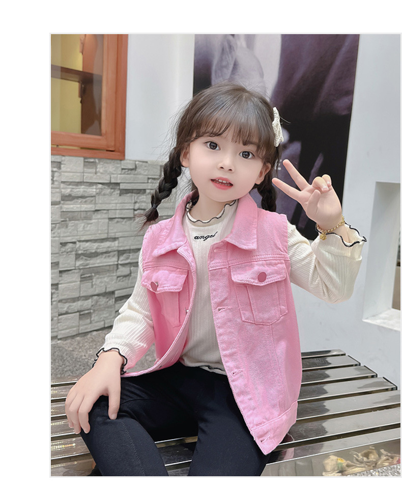 여아 데님 조끼 봄과 가을 어린이 아기 조끼 한국식 중소 어린이 여성 아기 코트 조끼