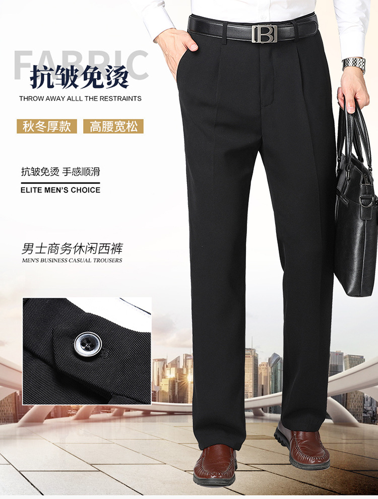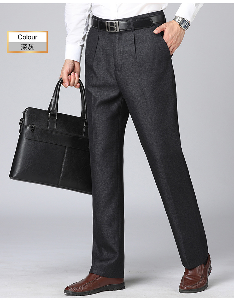 가을과 겨울 두꺼운 남성 캐주얼 바지 스트레이트 다리 느슨한 비즈니스 원피스 바지 기모 두꺼운 비 다림질 바지 남성용