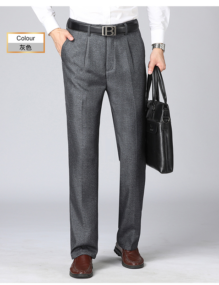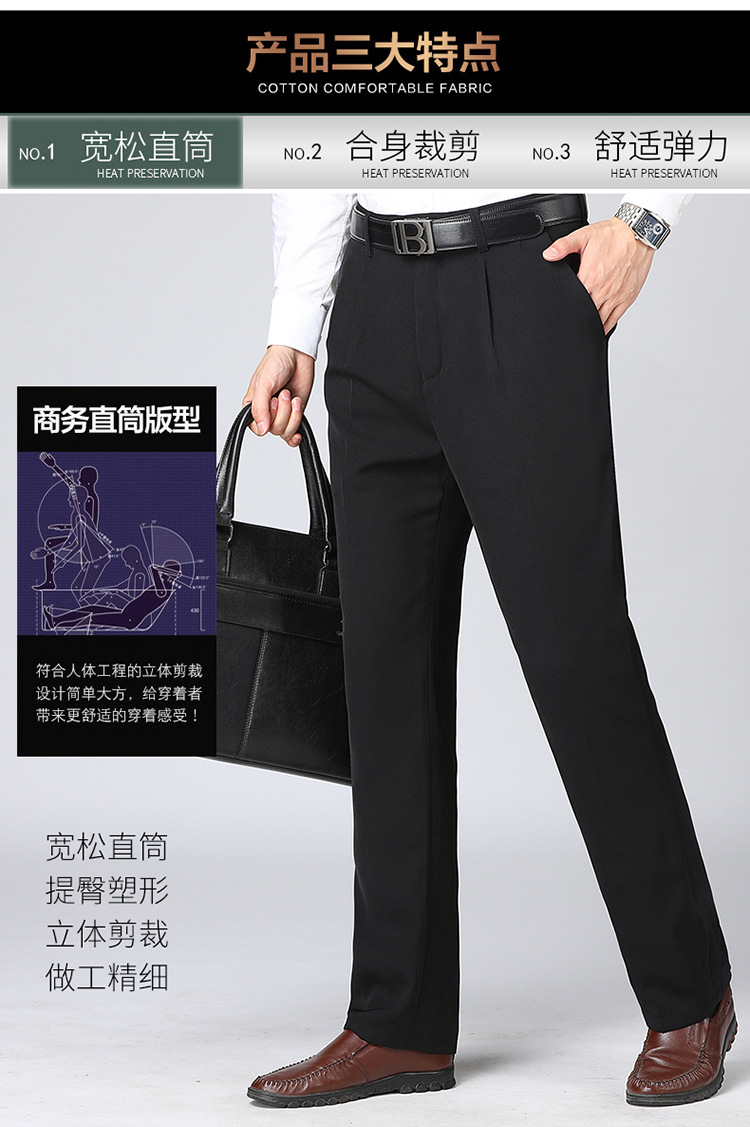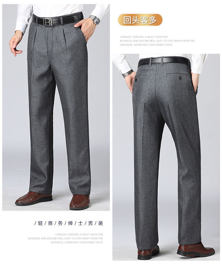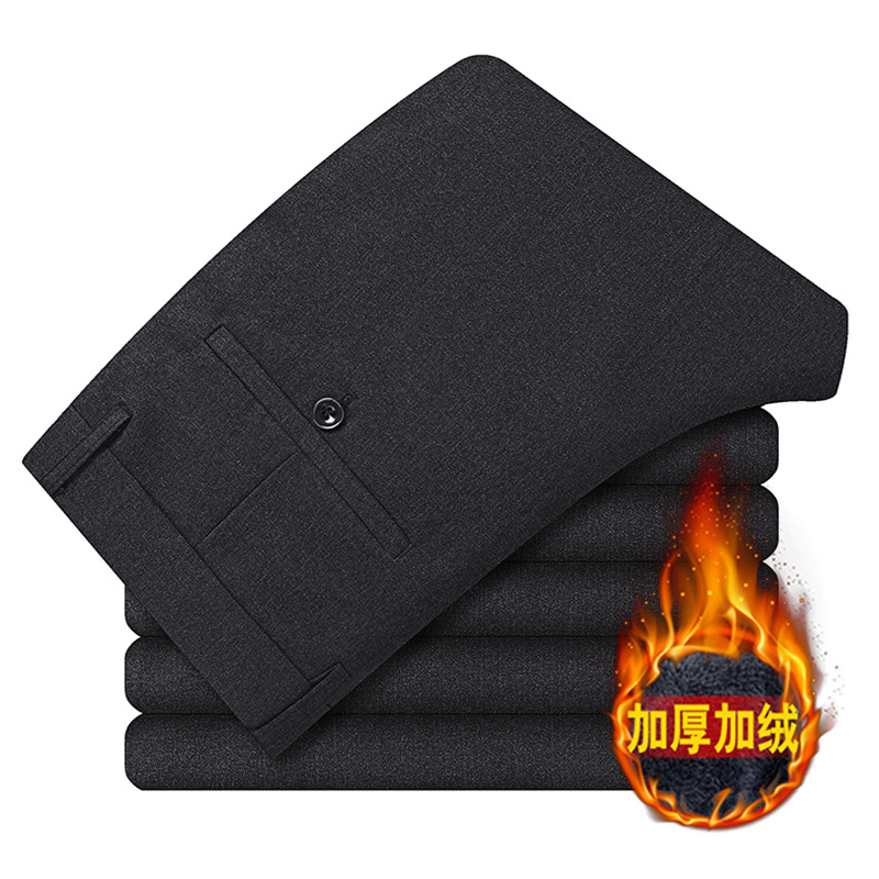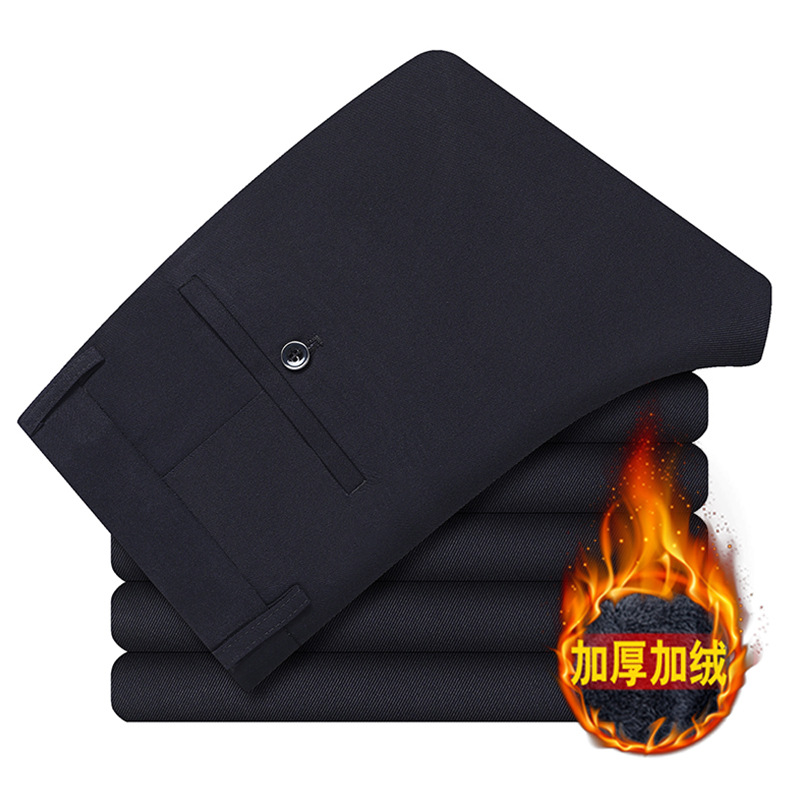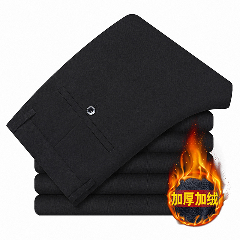 가을과 겨울 두꺼운 남성 캐주얼 바지 스트레이트 다리 느슨한 비즈니스 원피스 바지 기모 두꺼운 비 다림질 바지 남성용스토어 가기
