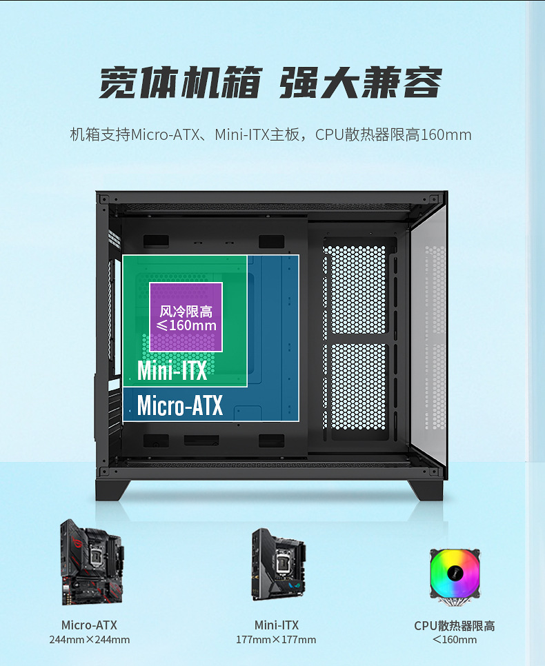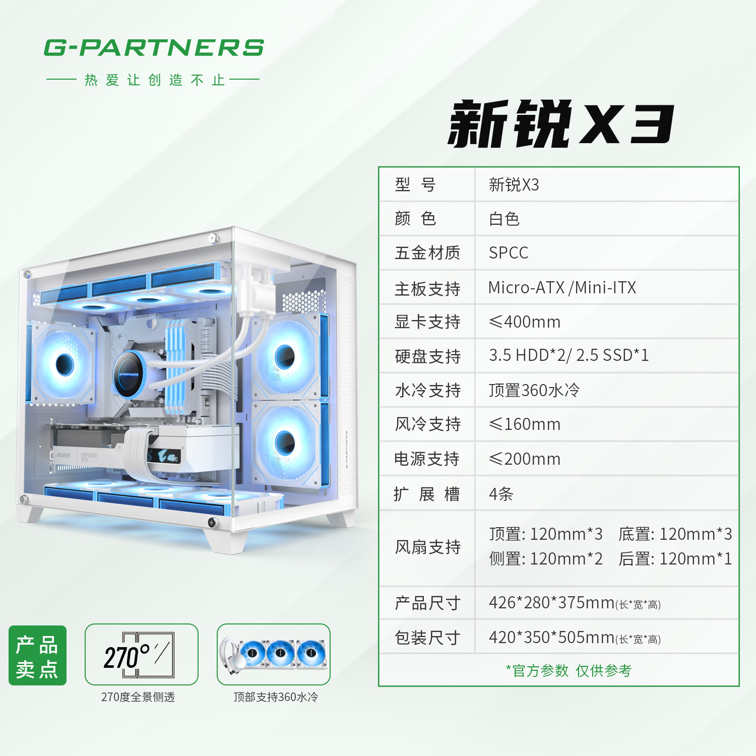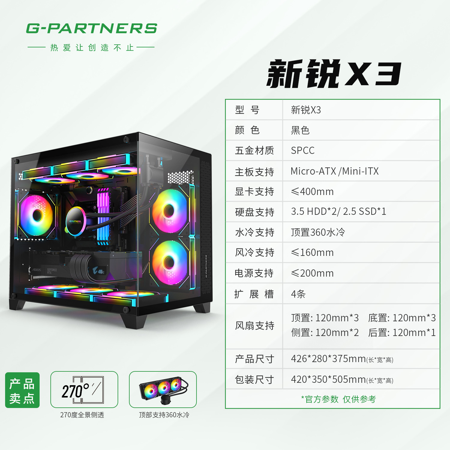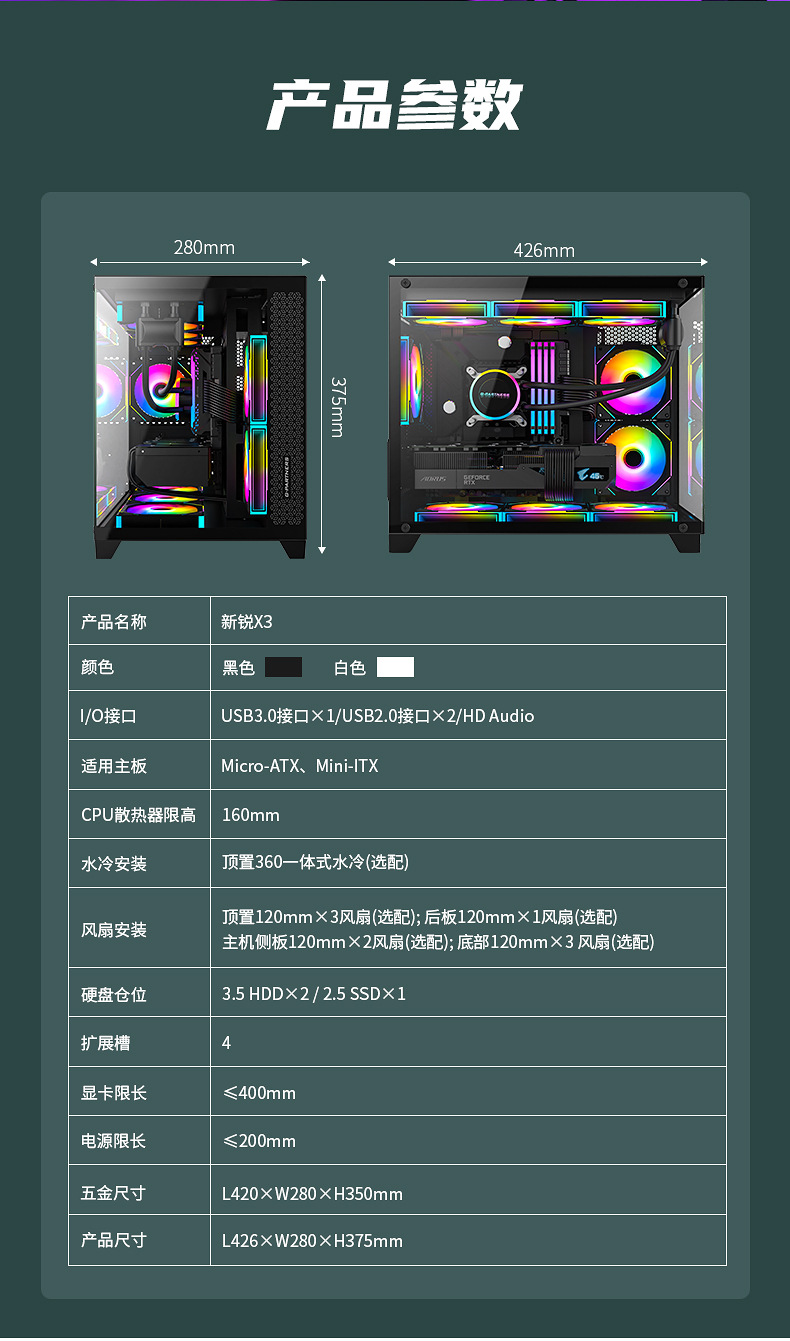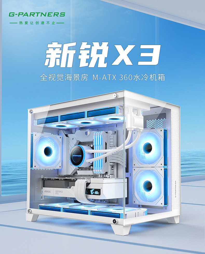 크로스 보더 New X3 시뷰 룸 컴퓨터 섀시 데스크탑 파노라마 사이드 뷰 게임 E 스포츠 M-ATX 수냉식 섀시